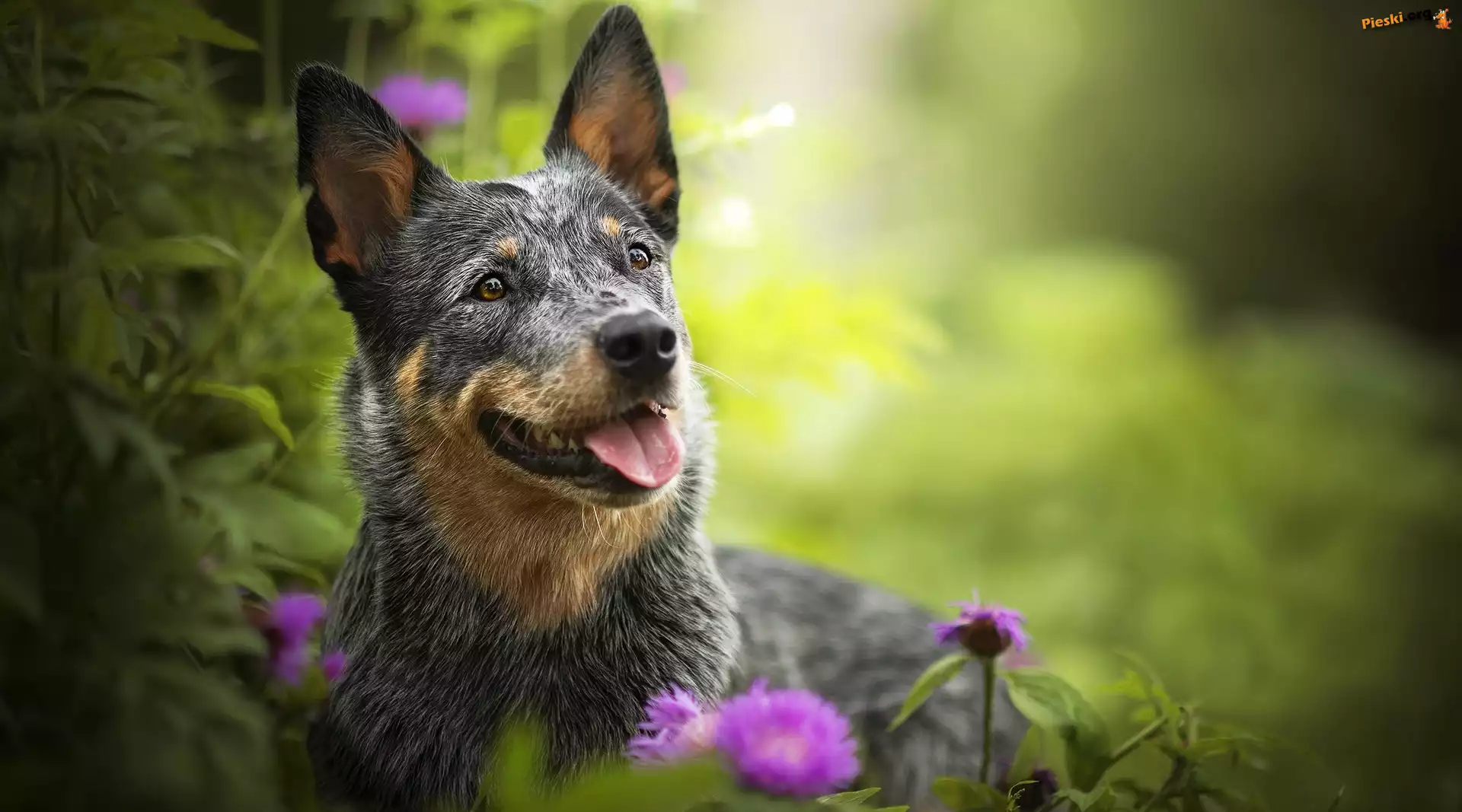 Kwiaty, Australian cattle dog, Pies, Mordka, Rośliny, Pieski