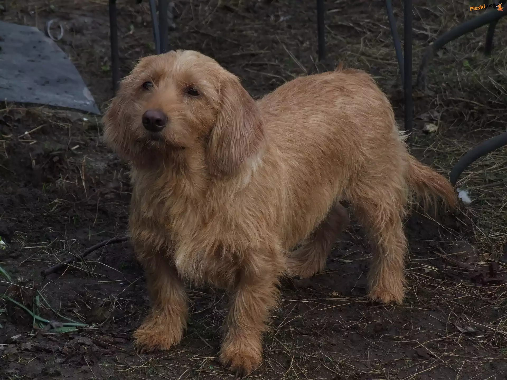 Basset Fauve de Bretagne Basset Fauve de Bretagne, dwa, słodkie, schody skulony, Basset Fauve de Bretagne