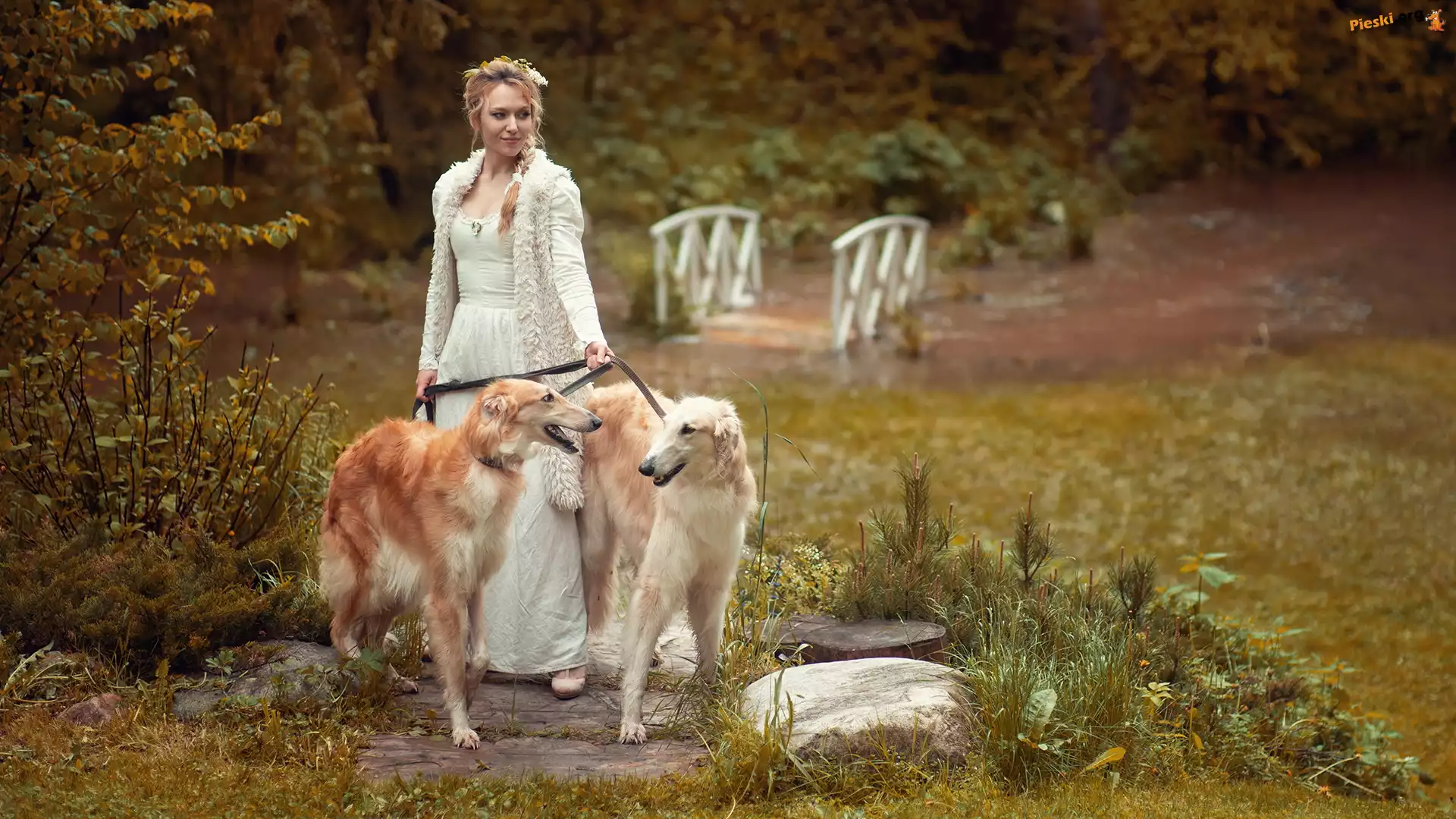 Psy, Blondynka, Kobieta, Dwa, Charty rosyjskie borzoj
