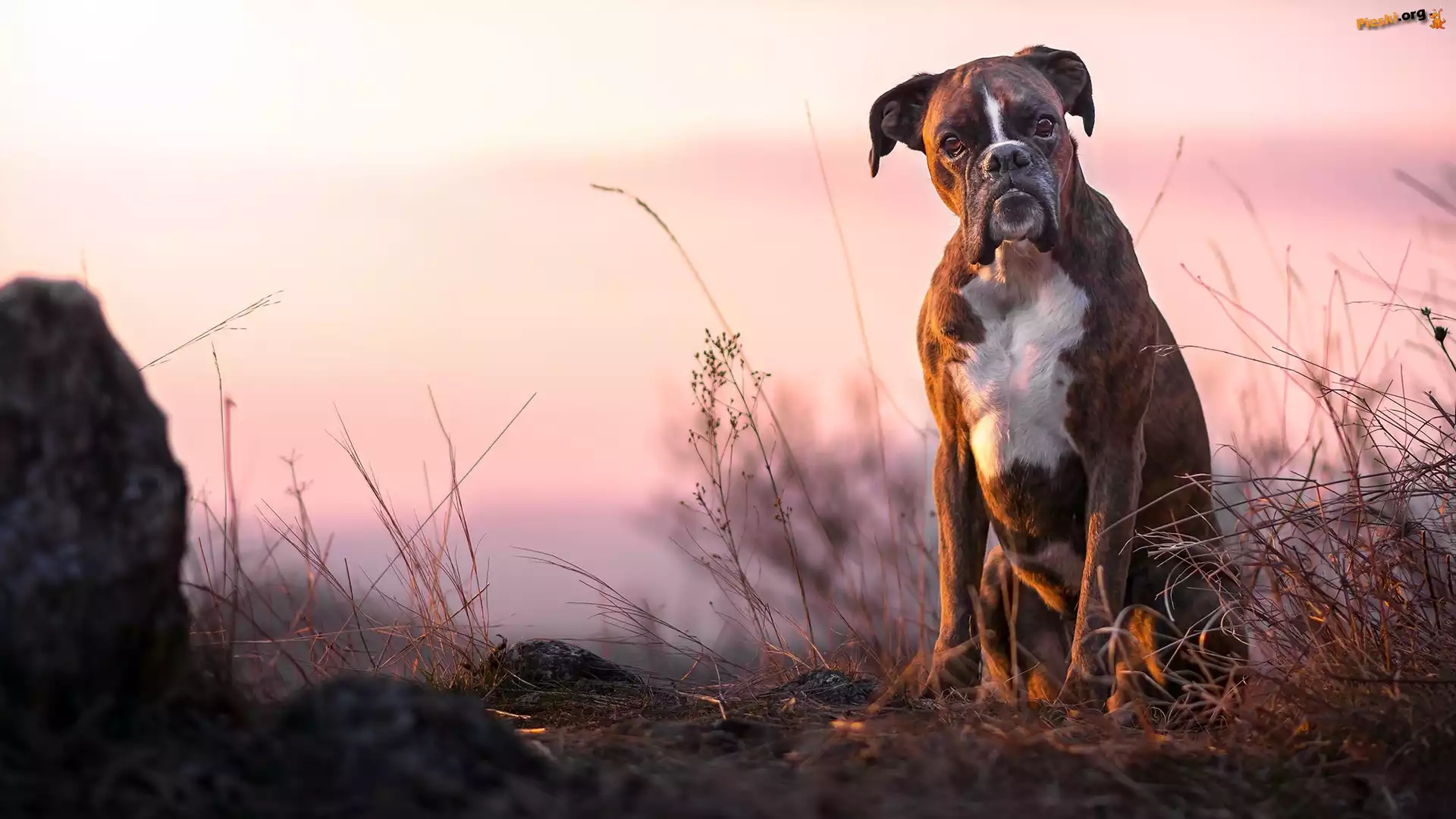 Pies, Bokser, Trawa, Pieski