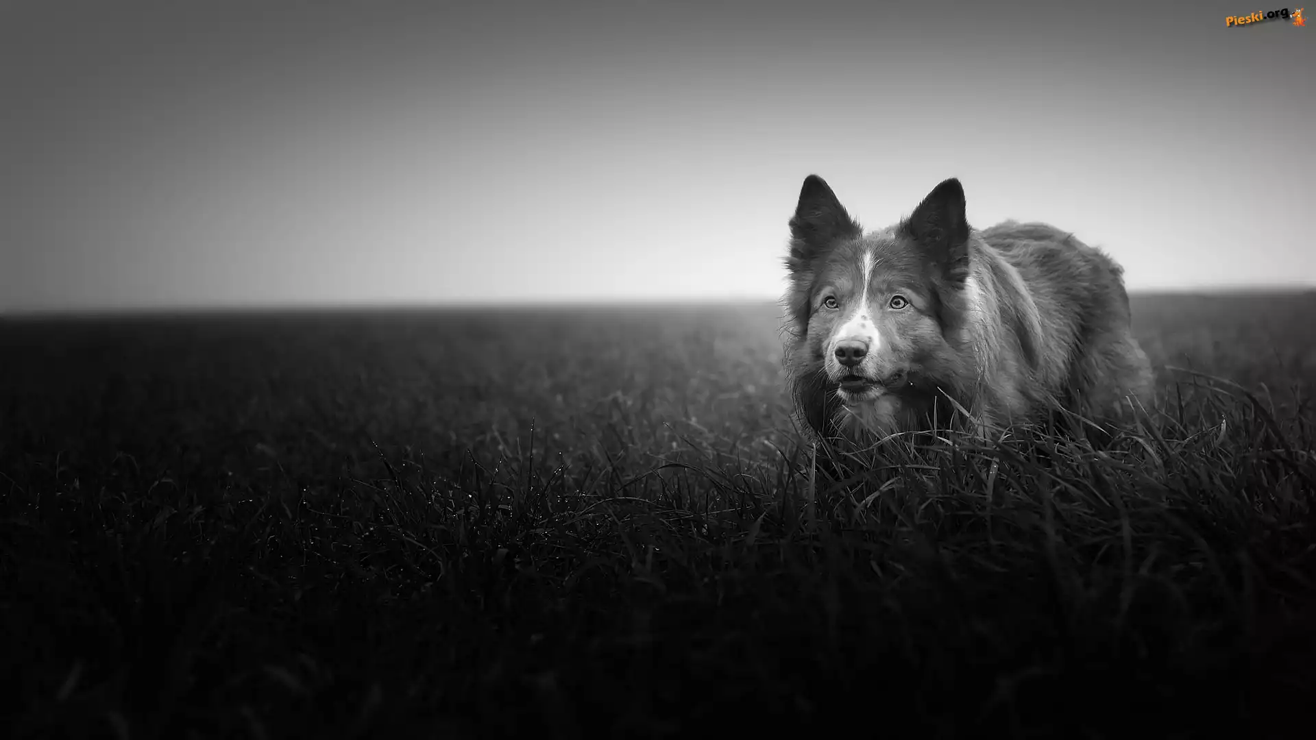Border collie, Łąka, Trawa, Czarno-białe