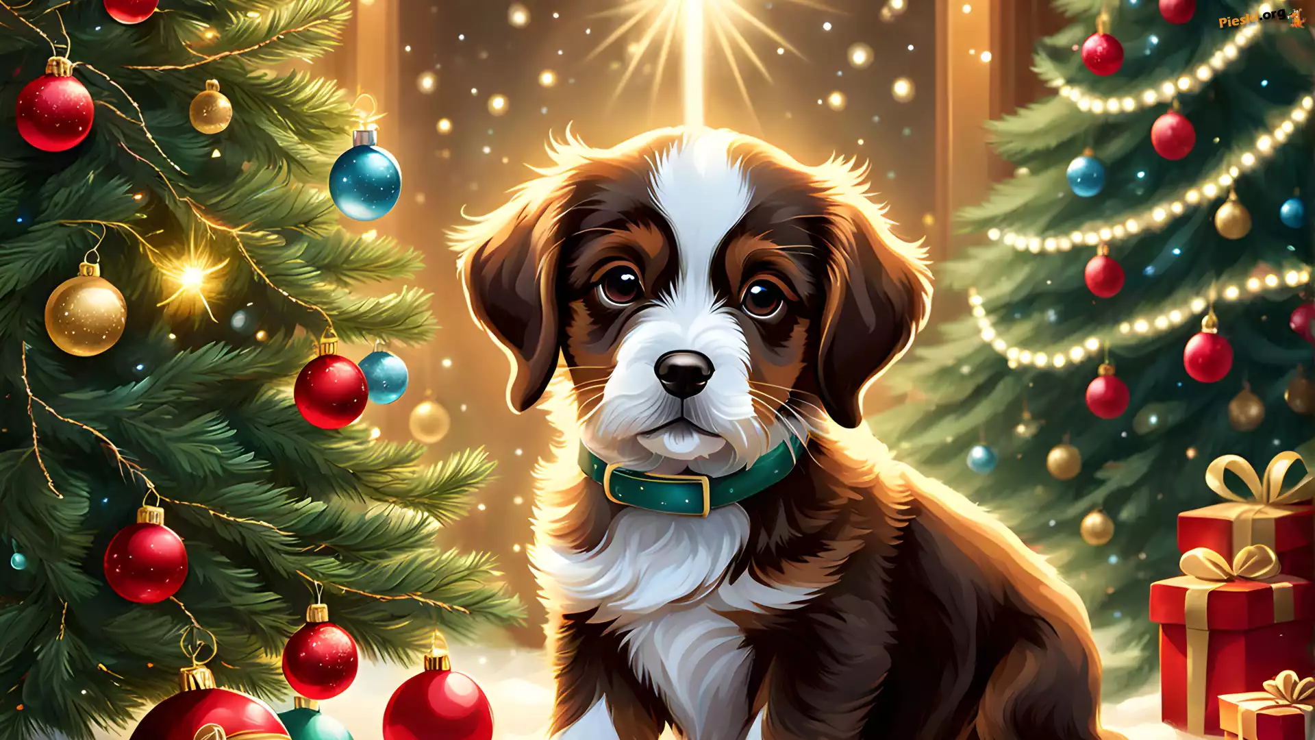 Grafika, Choinki, Boże Narodzenie, Szczeniak