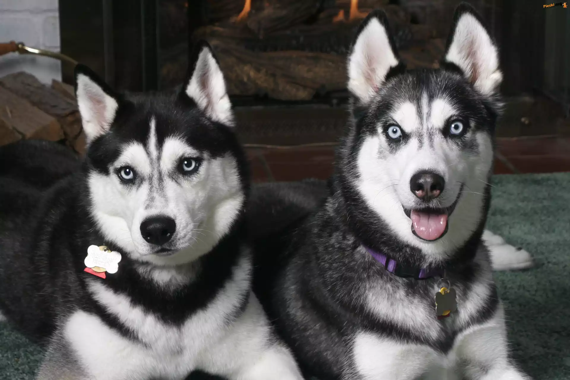 dwa, czarne, Siberian Husky