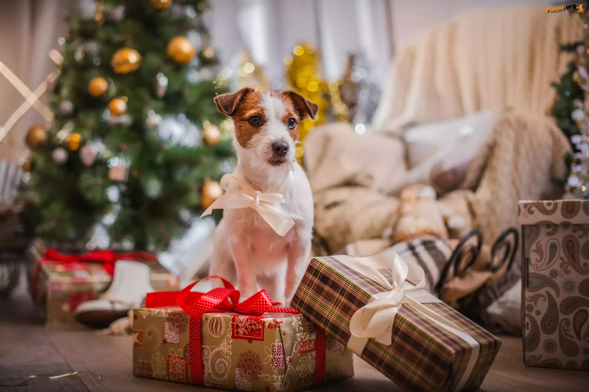 Prezenty, Jack Russell terier, Pies, Kokardka, Święta, Pieski