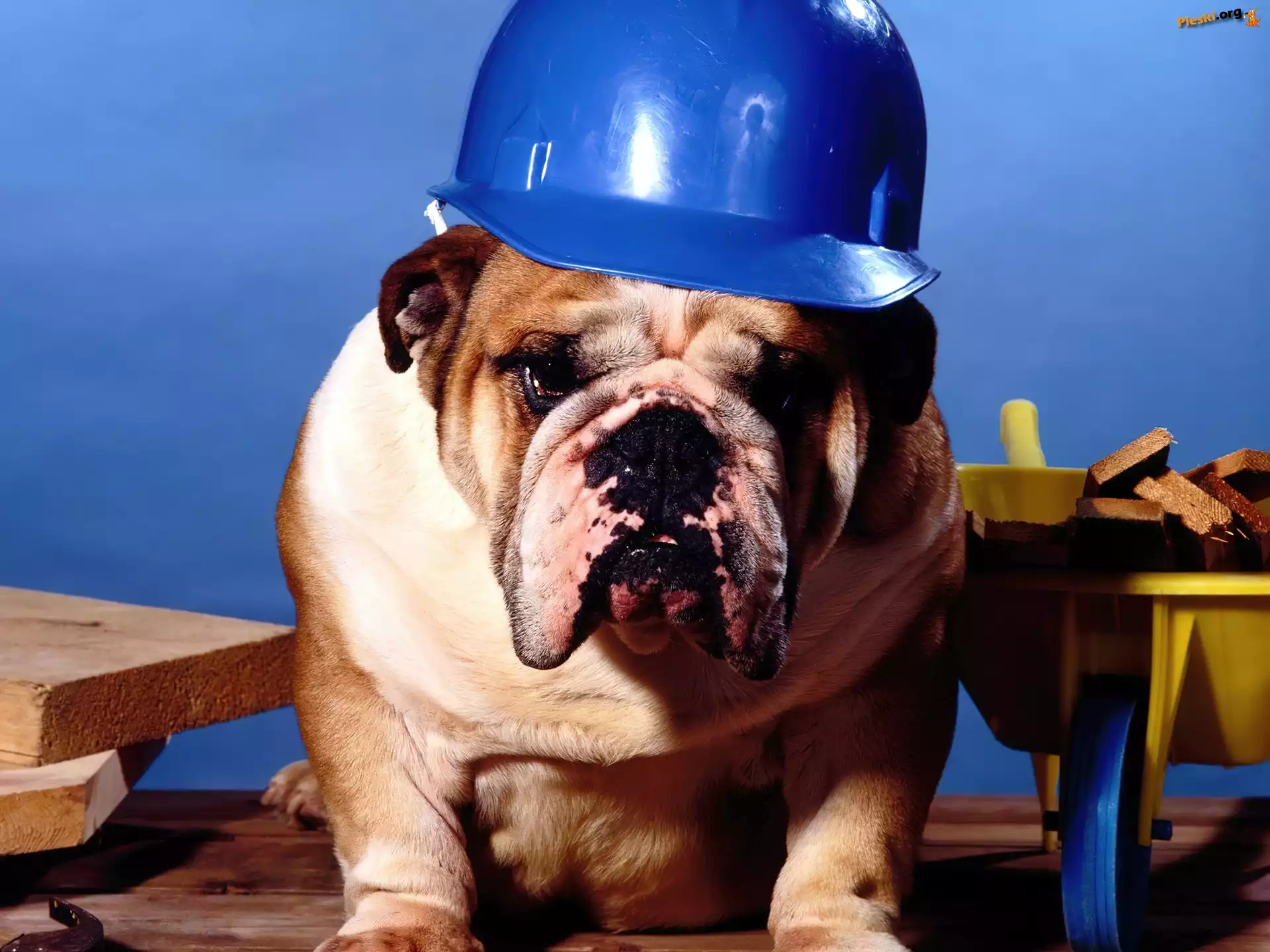Buldog, Budowniczy, Pies, Kask, Pieski