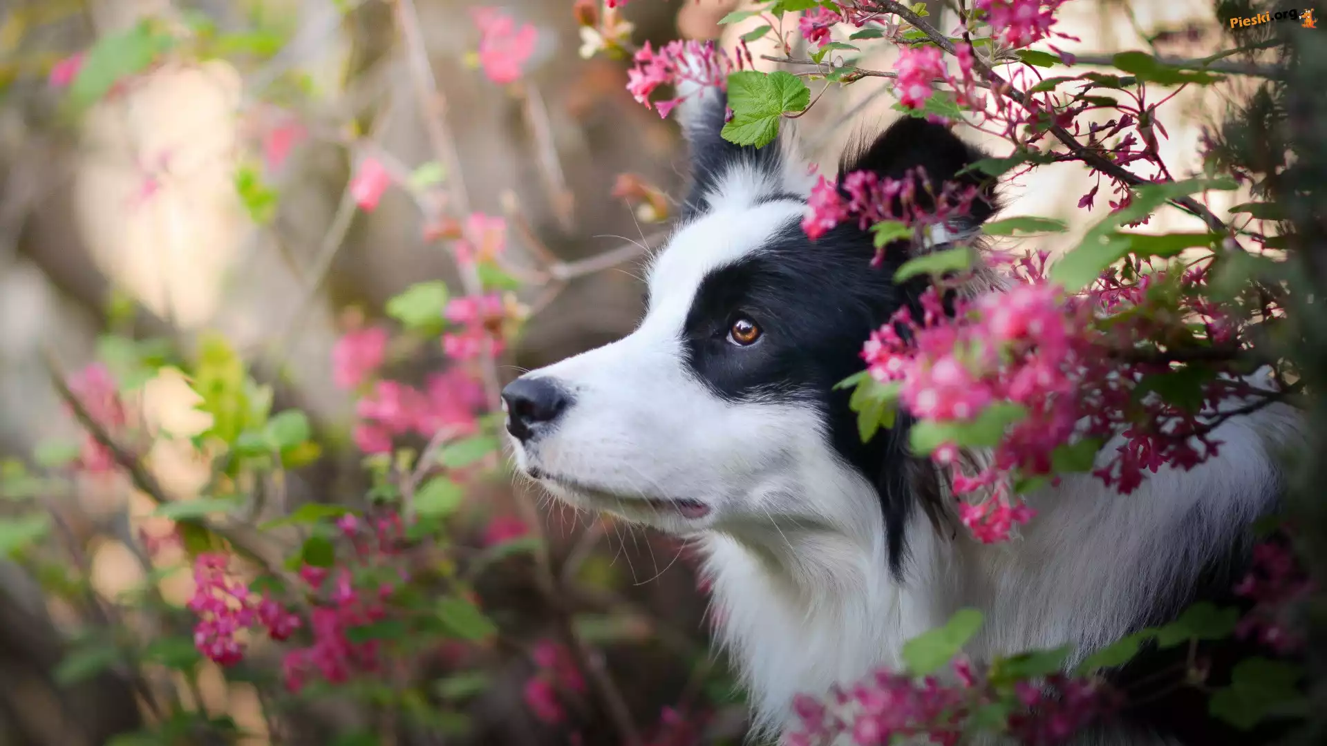 Krzewy, Pies, Border collie, Kwiaty, Pieski