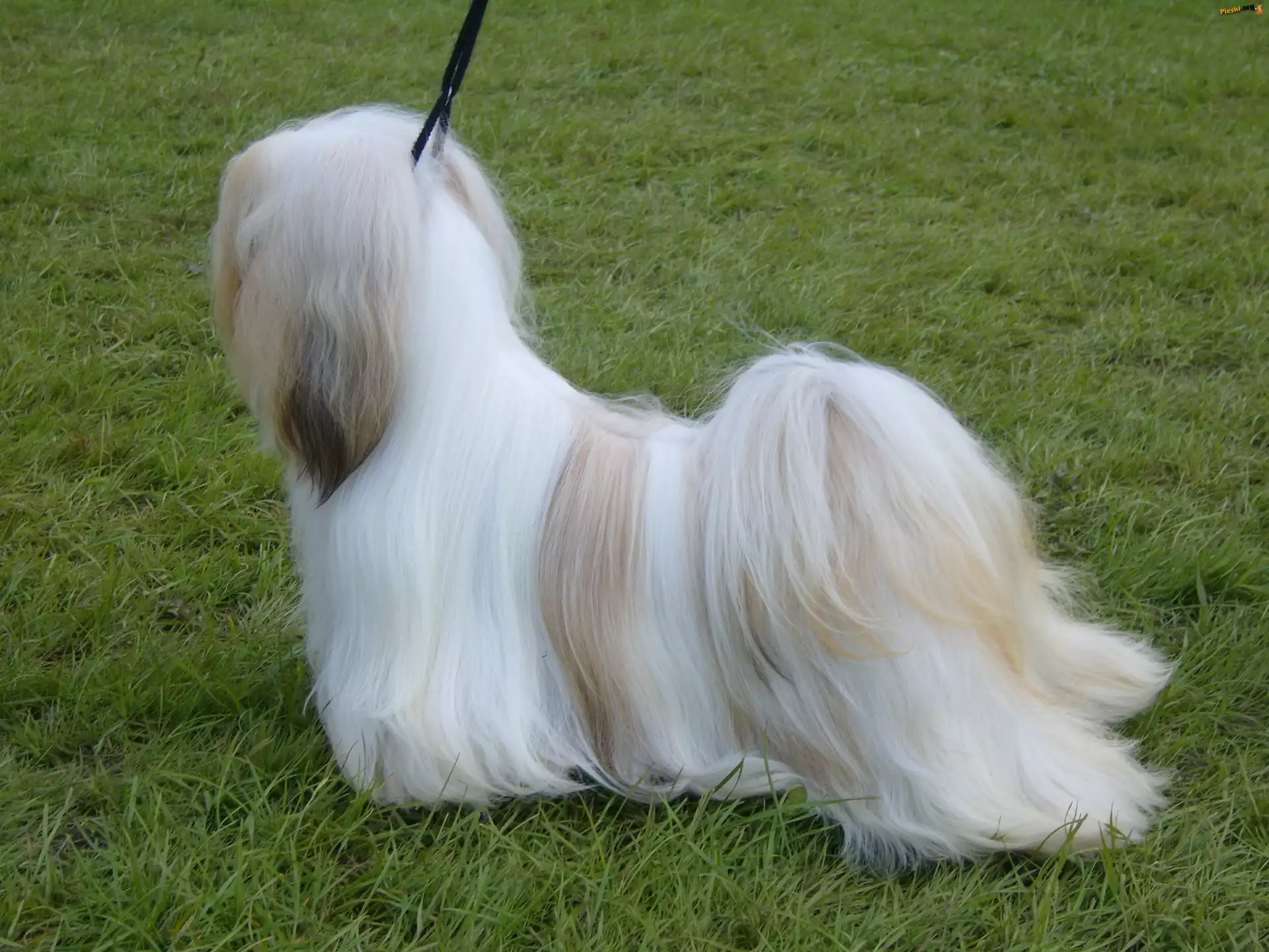 Lhasa Apso, kokardka Malutki piesek, Lhasa Apso Lana Del Rey, Pies, Lhasa Apso wyczesany, Lhasa Apso Pies, Różowa, Gerbera, Lhasa Apso