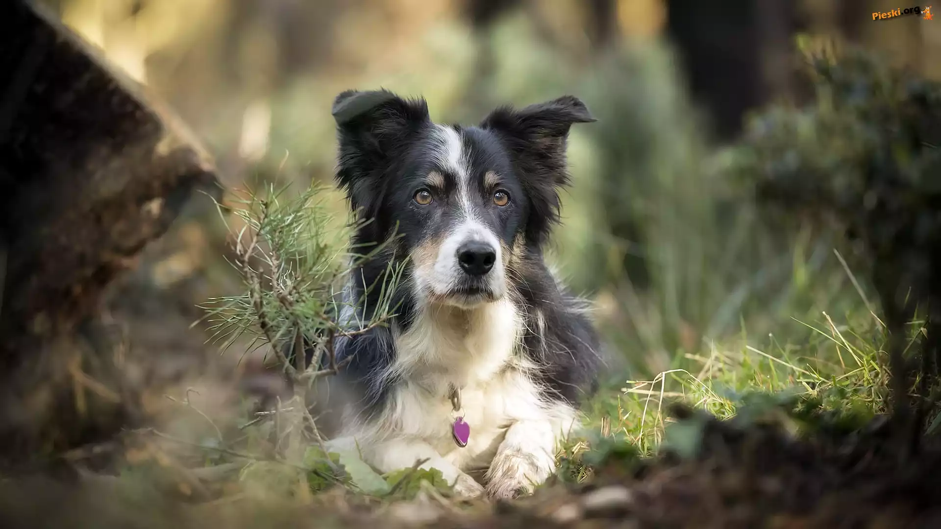 Mordka, Pies, Leżący, Border collie, Rośliny, Pieski