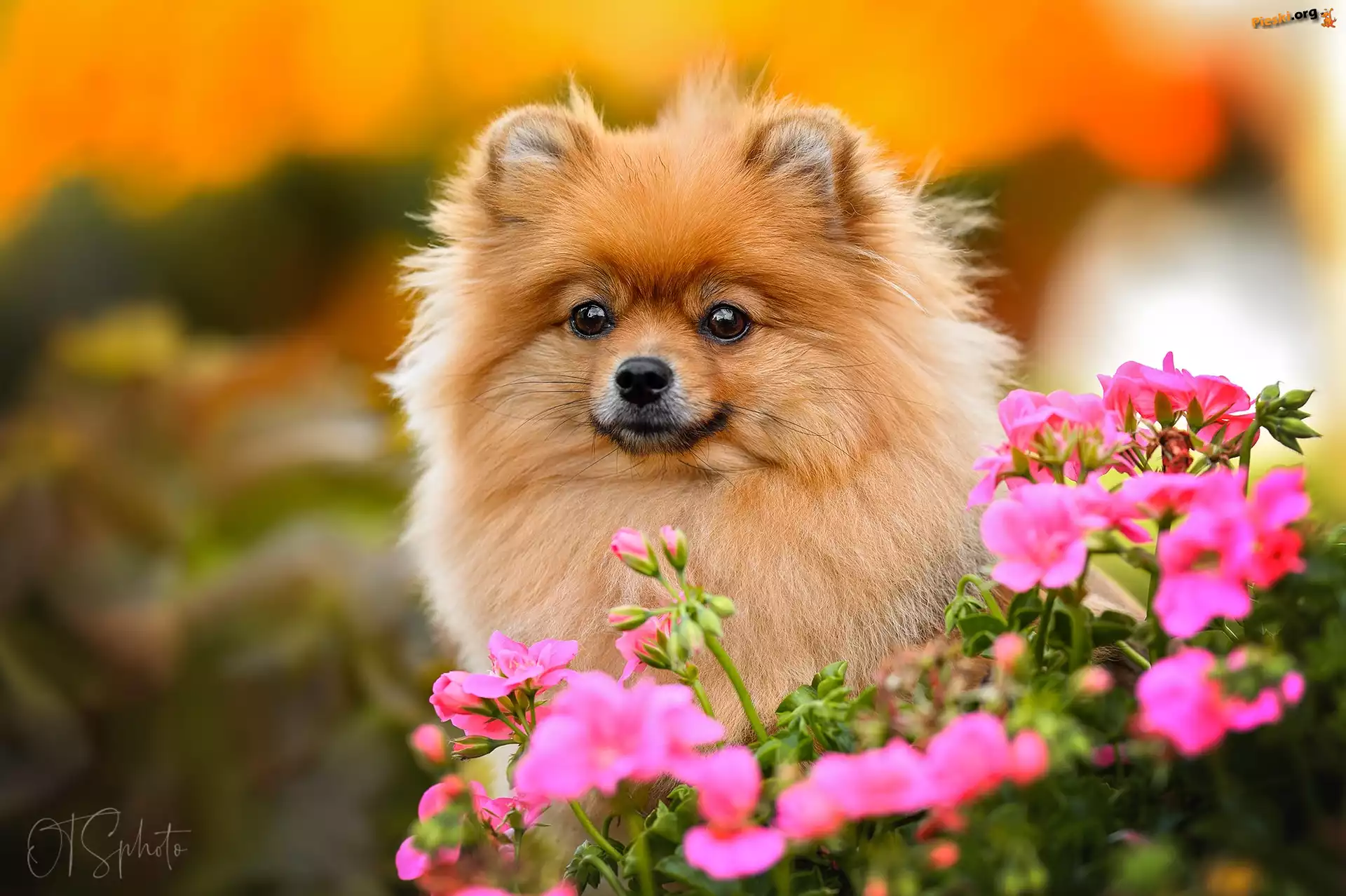 Pomeranian, Kwiaty, Pies, Mordka, Szpic miniaturowy, Pieski