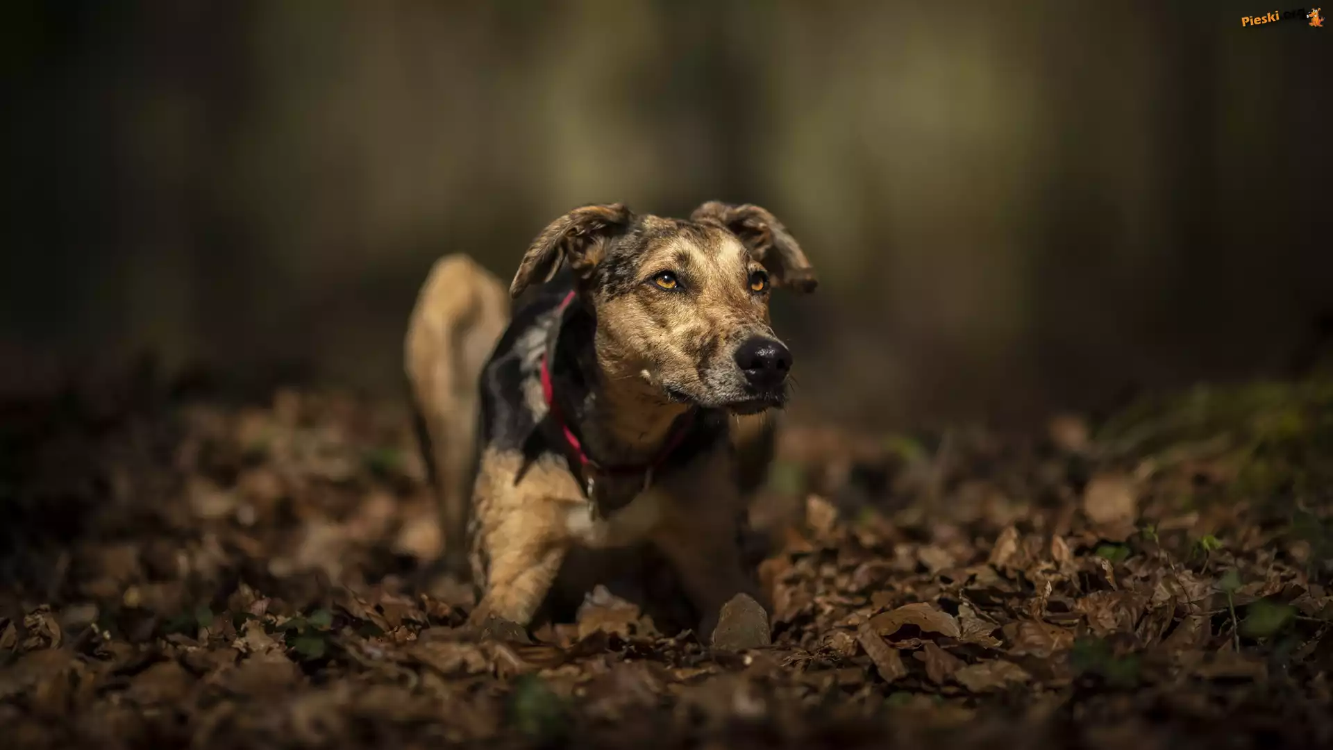 Whippet, zielone, liście Pies, Whippet, Mordka