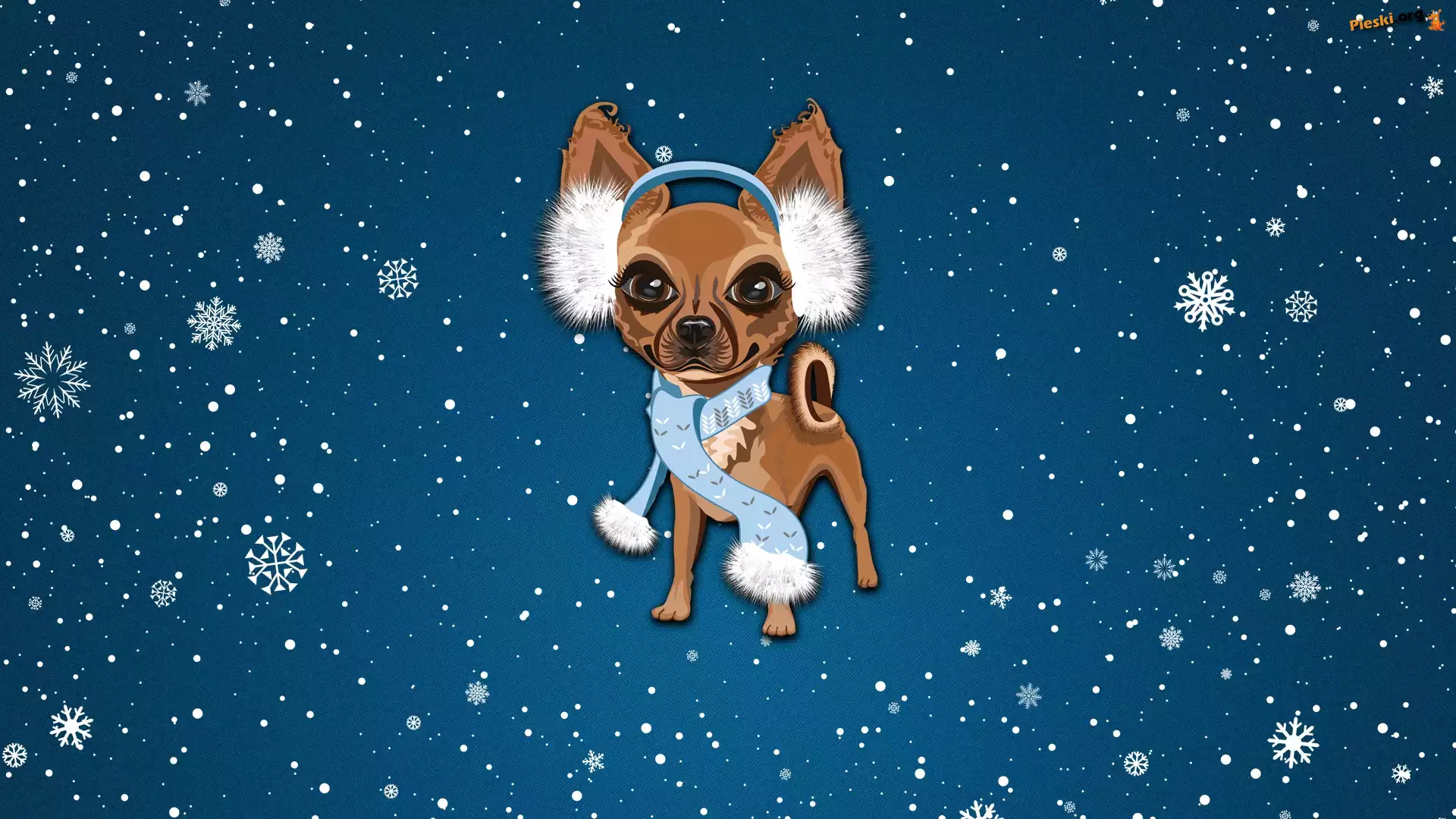 Nauszniki, Pies, Zima, Szalik, 2D, Pieski