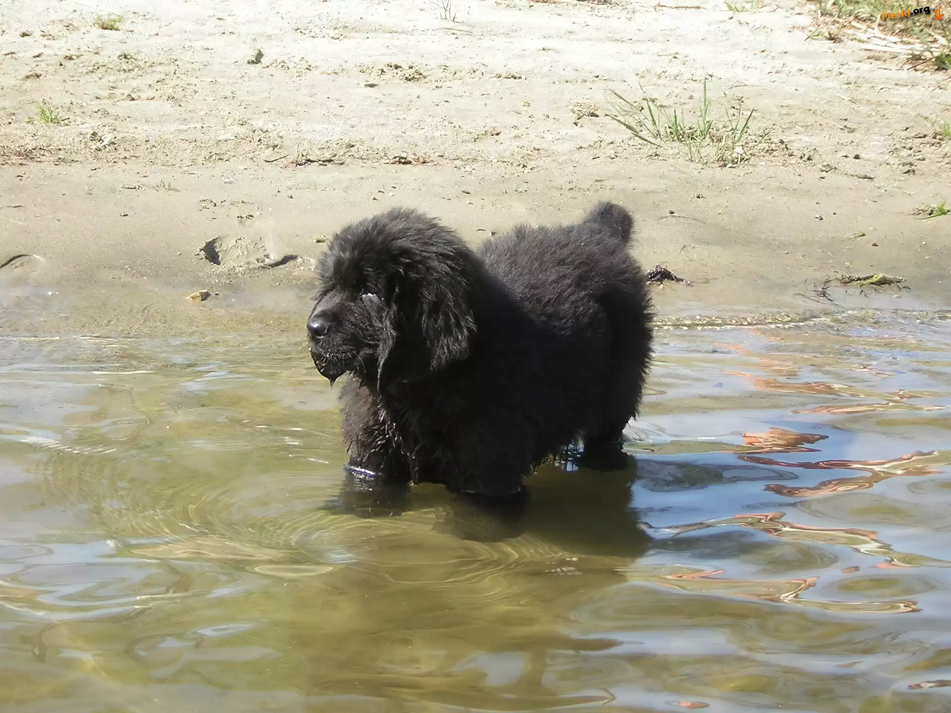 Nowofundland, woda Długa, Pies, Czarna, Sierść brązowy, Nowofundland Nowofundland, Pysk szczeniak nowofundlanda Dwa, Szczeniaczki, Nowofundland Kwiaty, Pies, Łąka, Nowofundland