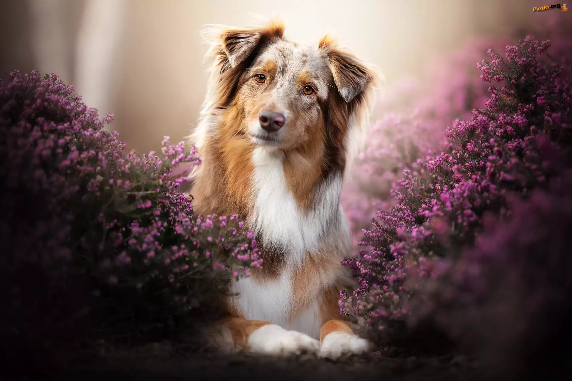 Owczarek australijski, Pies, Brązowo-biały, Wrzosy