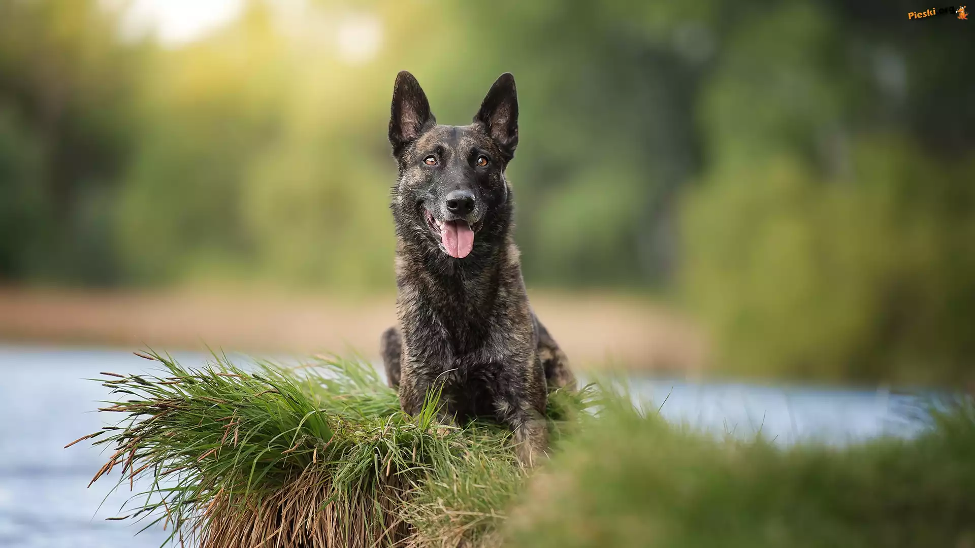 Owczarek holenderski, stojące, uszy Leżący, Owczarek holenderski Skarpa, Owczarek holenderski krótkowłosy, Pies, Mordka, Woda Owczarek holenderski, trawa Młody, Owczarek holenderski szczeniaki, Cztery, słodkie, Owczarki holenderskie
