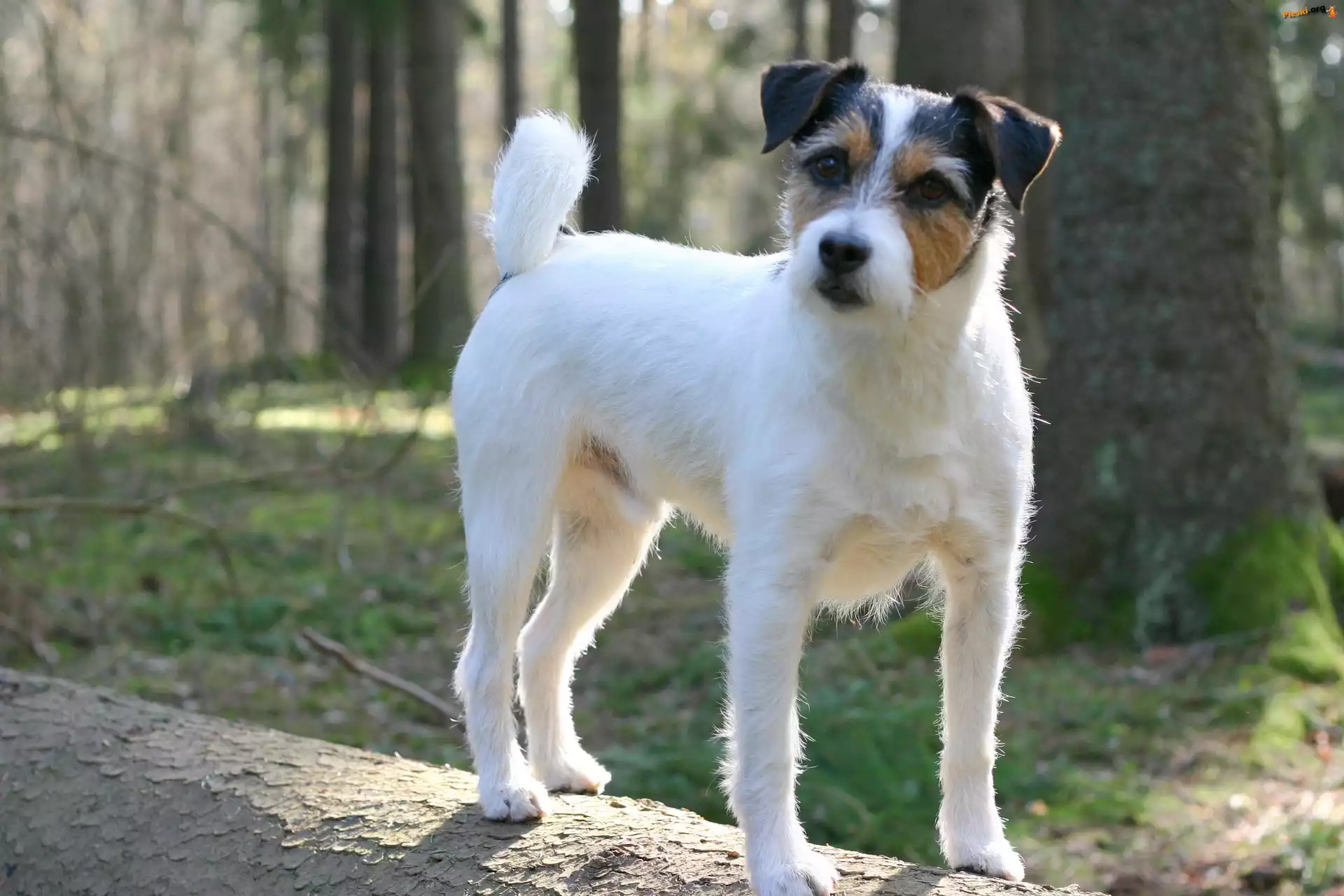 Domy, Ubranko, Parson Russell Terrier Parson Russell Terrier, Las Polana, Chłopiec, Mały, Szczeniaczek, Las głowa, Parson Russell Terriera Parson Russell Terrier, most