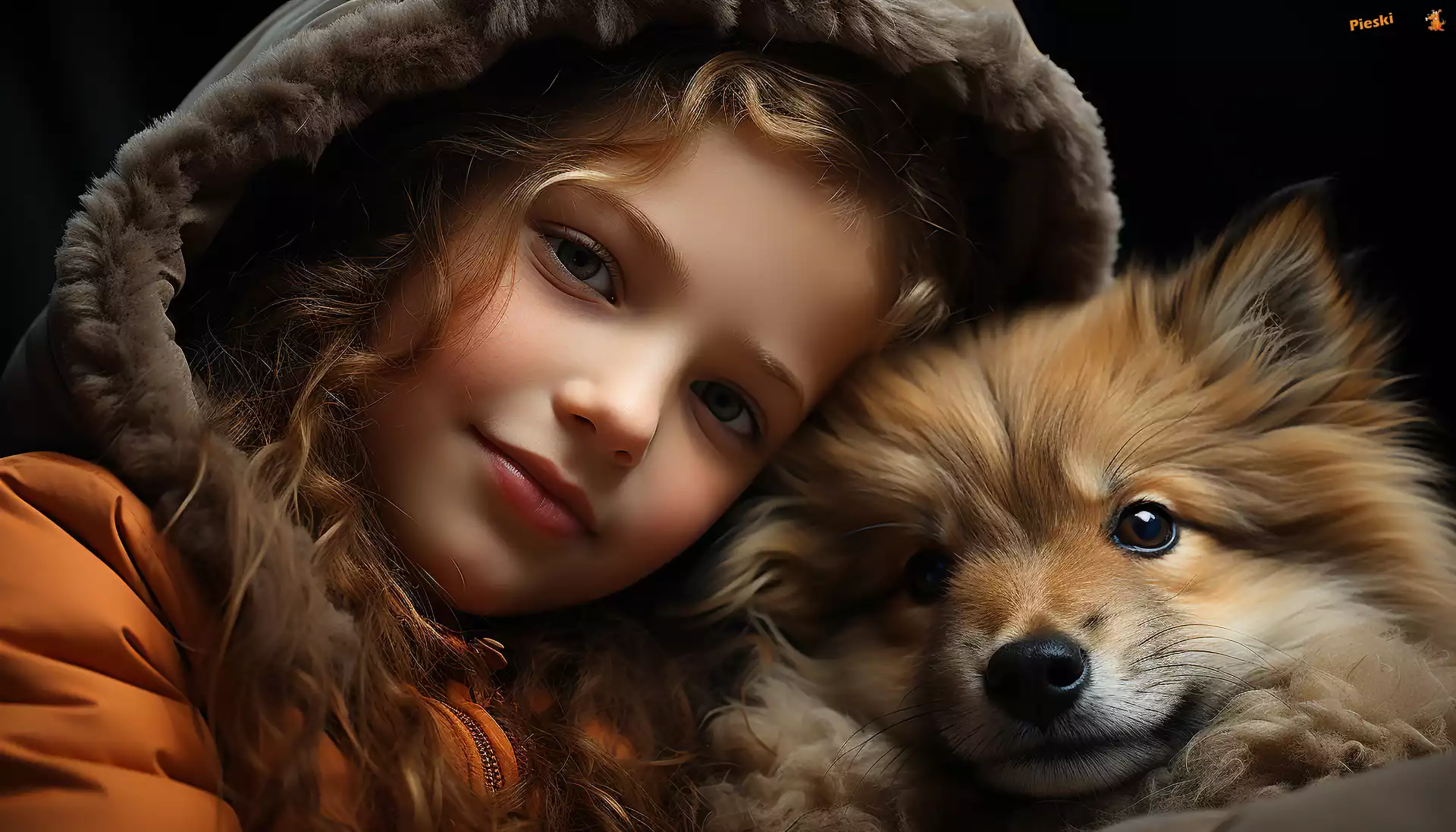 Kurtka, Pies, Dziecko, Kaptur, Dziewczynka, Pieski
