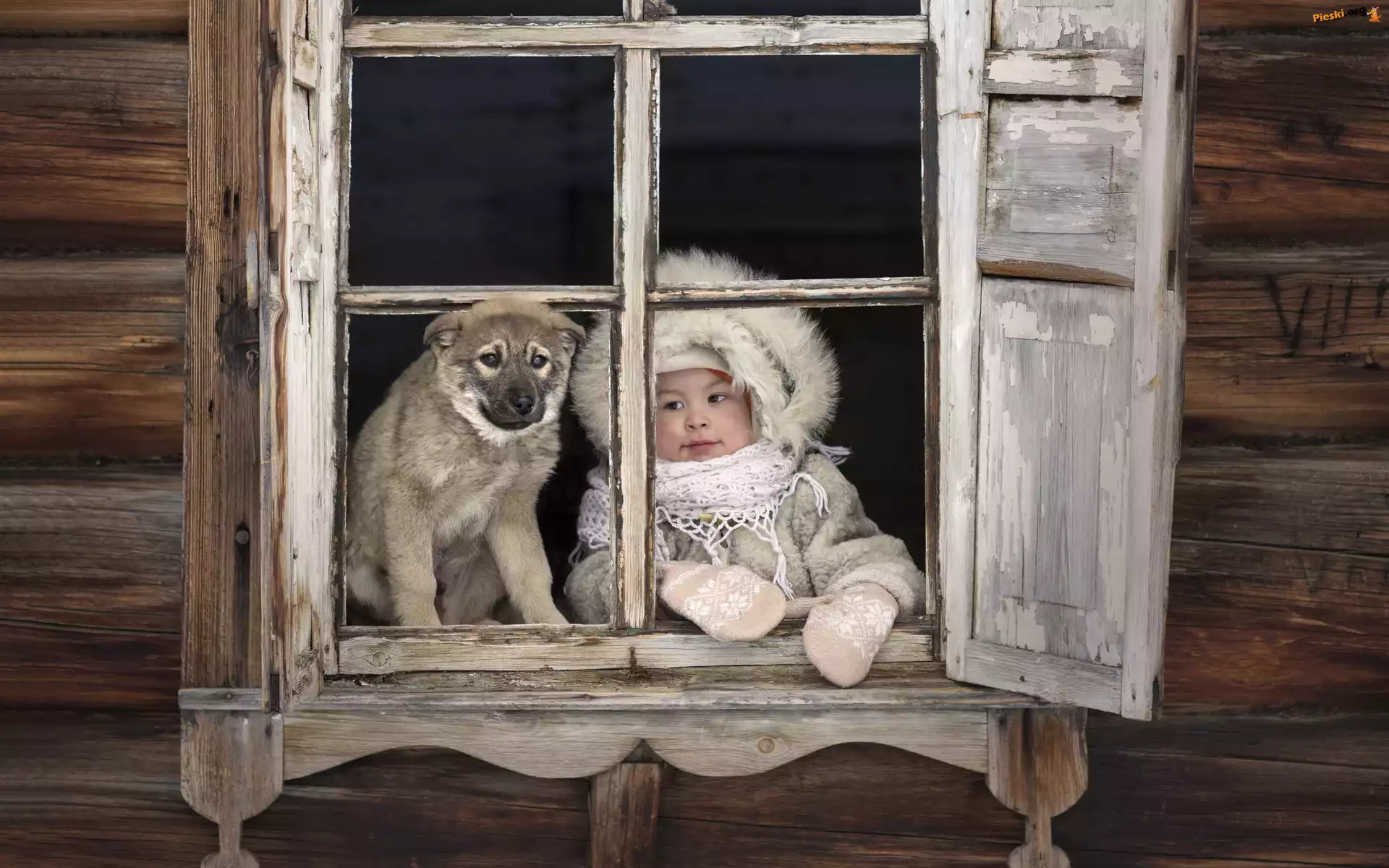 Pies, Dziecko, Dziewczynka, Okno, Pieski