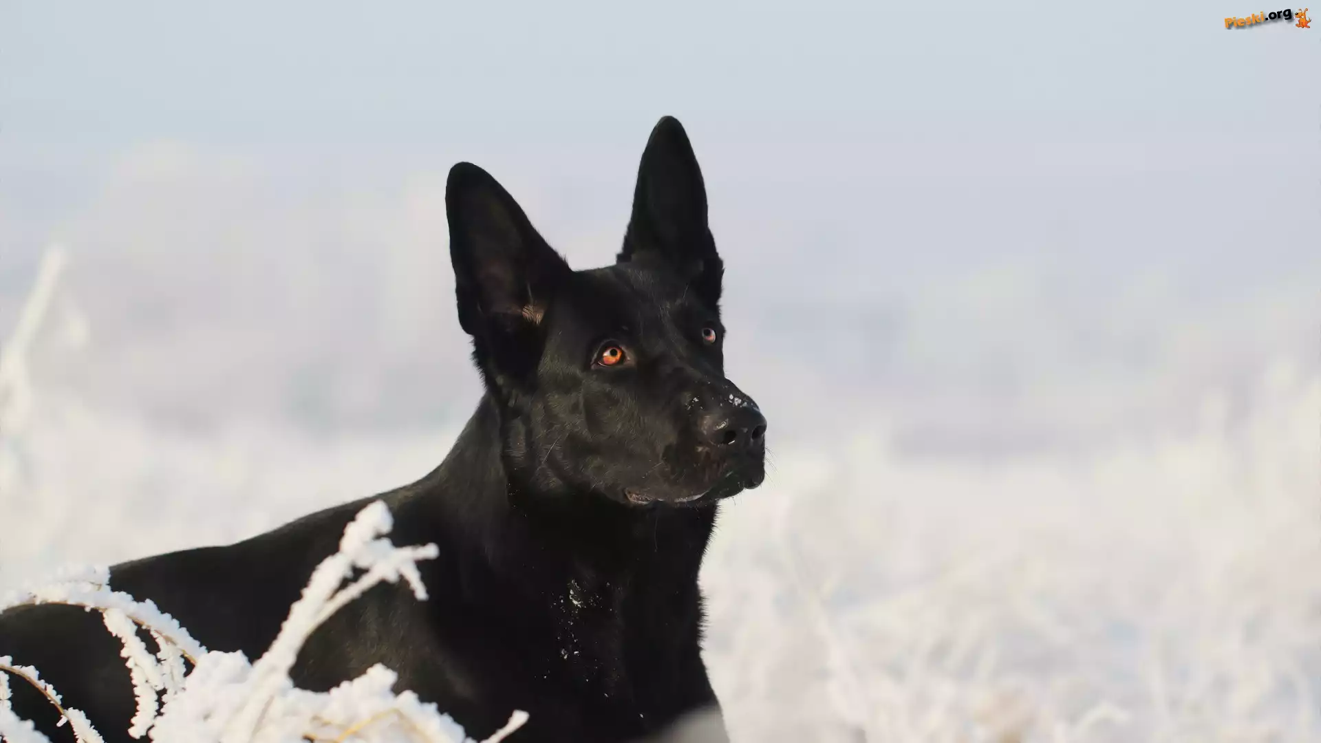 Pies, Czarny owczarek niemiecki, Śnieg