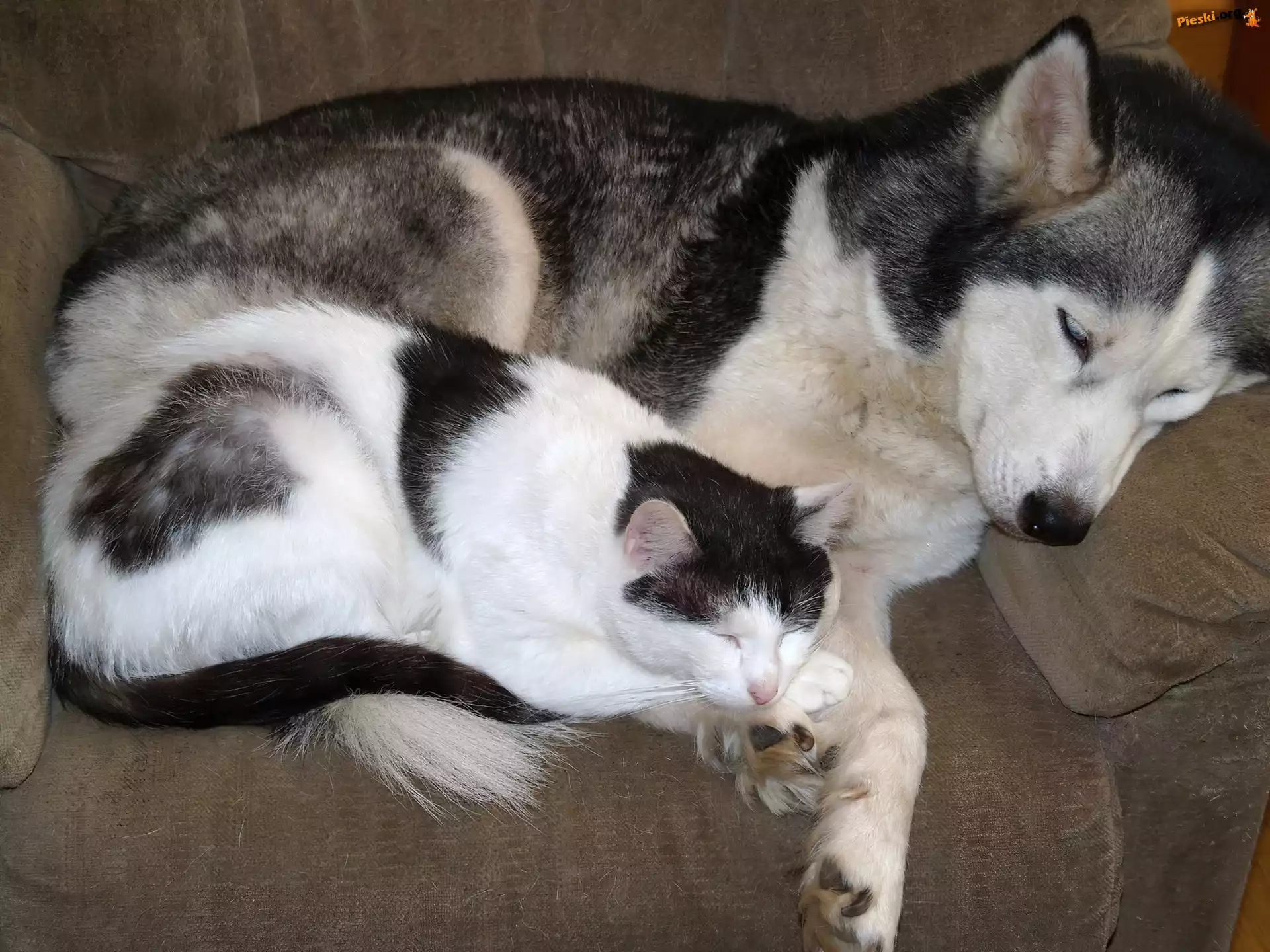 Pies, Śpiący, Kot, Siberian Husky