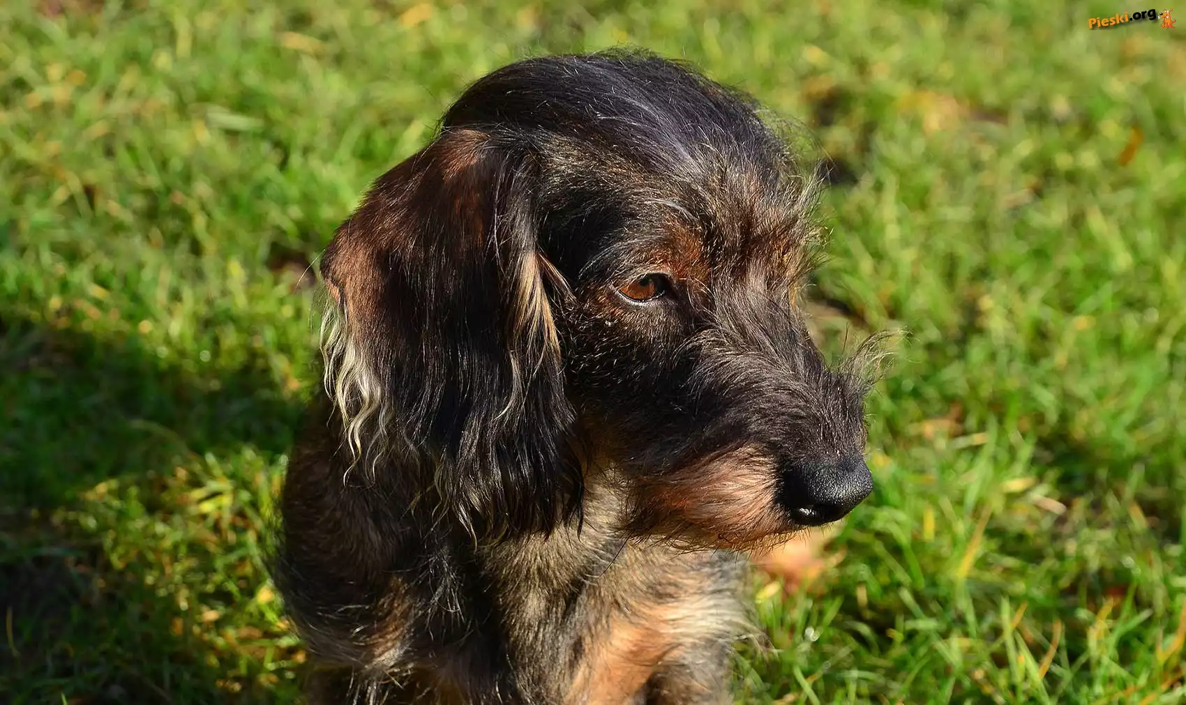 Spojrzenie, Piesek, Słodki, Szczenię, Jamnik szorstkowłosy Pies, Piesek, Trawa Jamnik, Szorstkowłosy