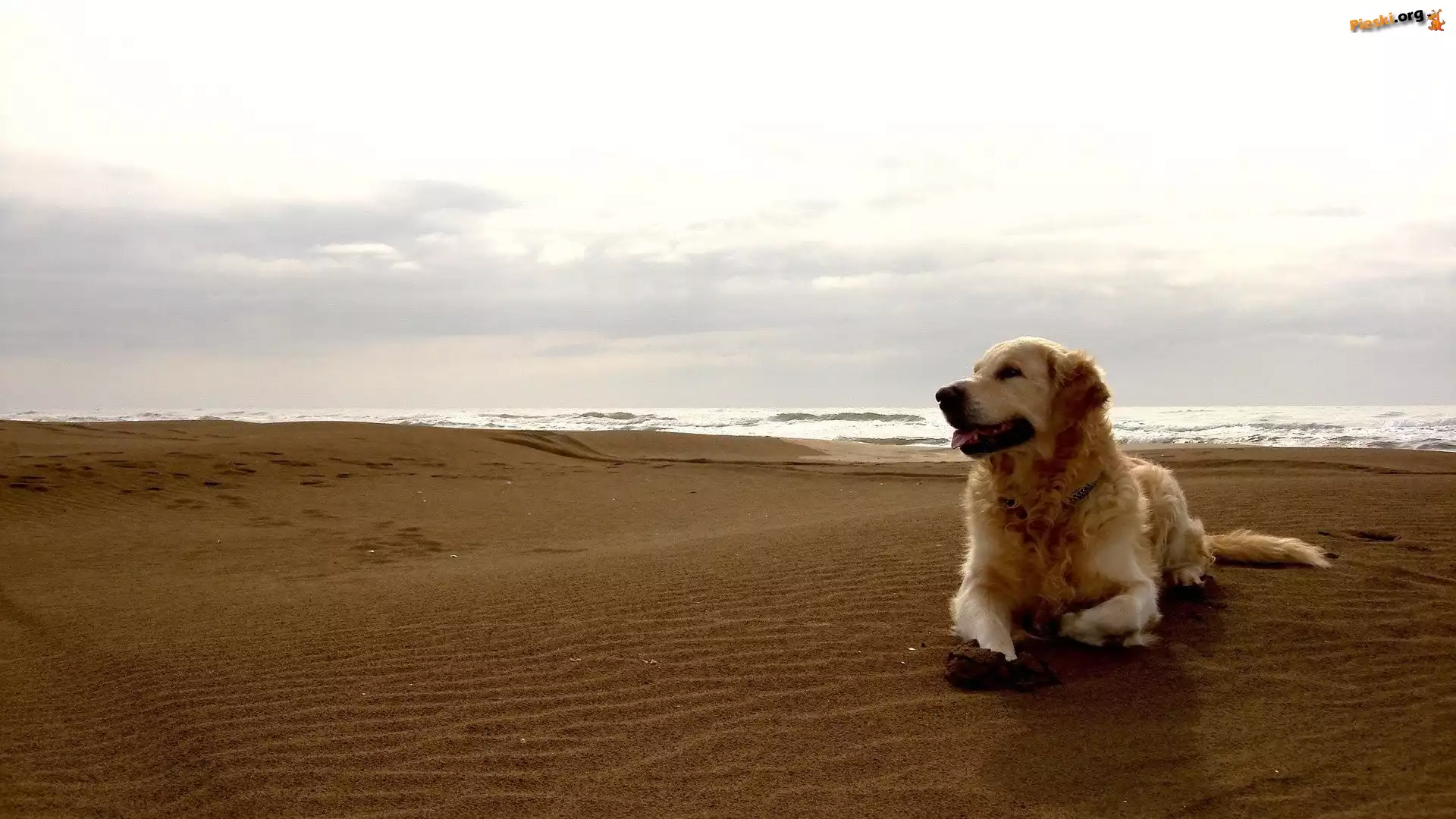 Plaża, Pies, Golden Retriever, Morze, Pieski