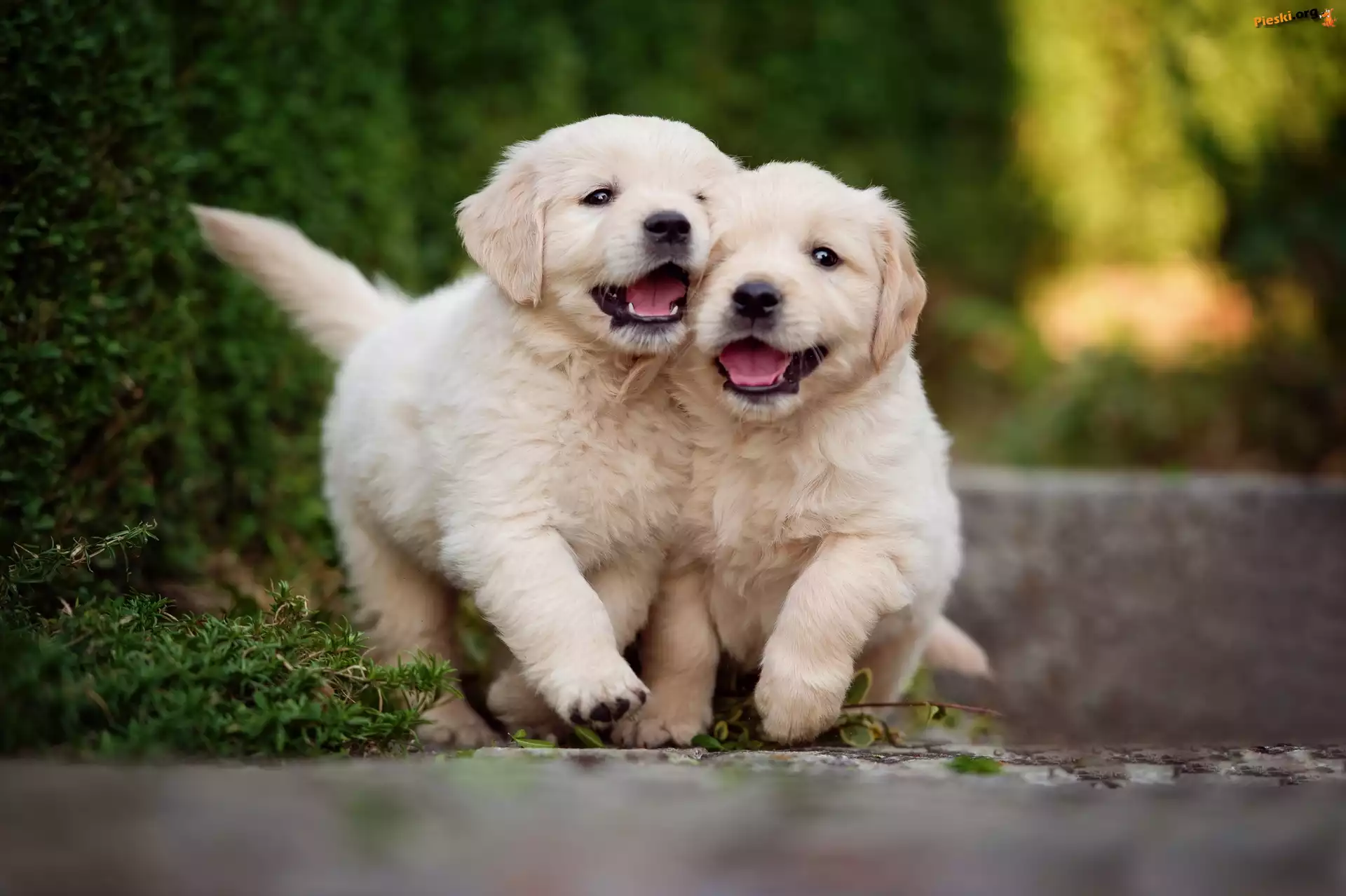Psy, Szczeniaki, Dwa, Golden Retrievery, Pieski