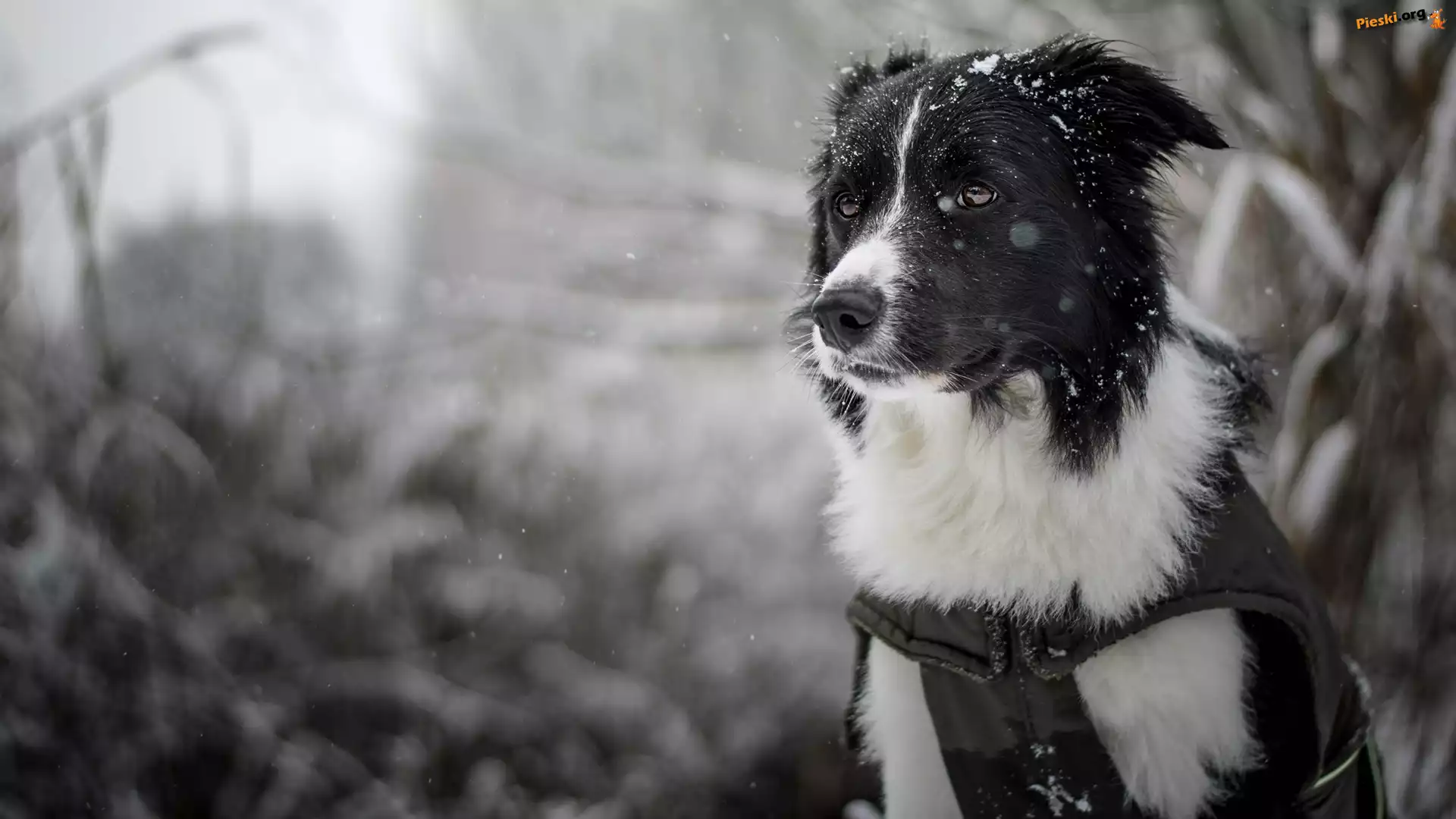 Pies, Rozmyte, Śnieg, Border collie, Mordka, Tło, Pieski