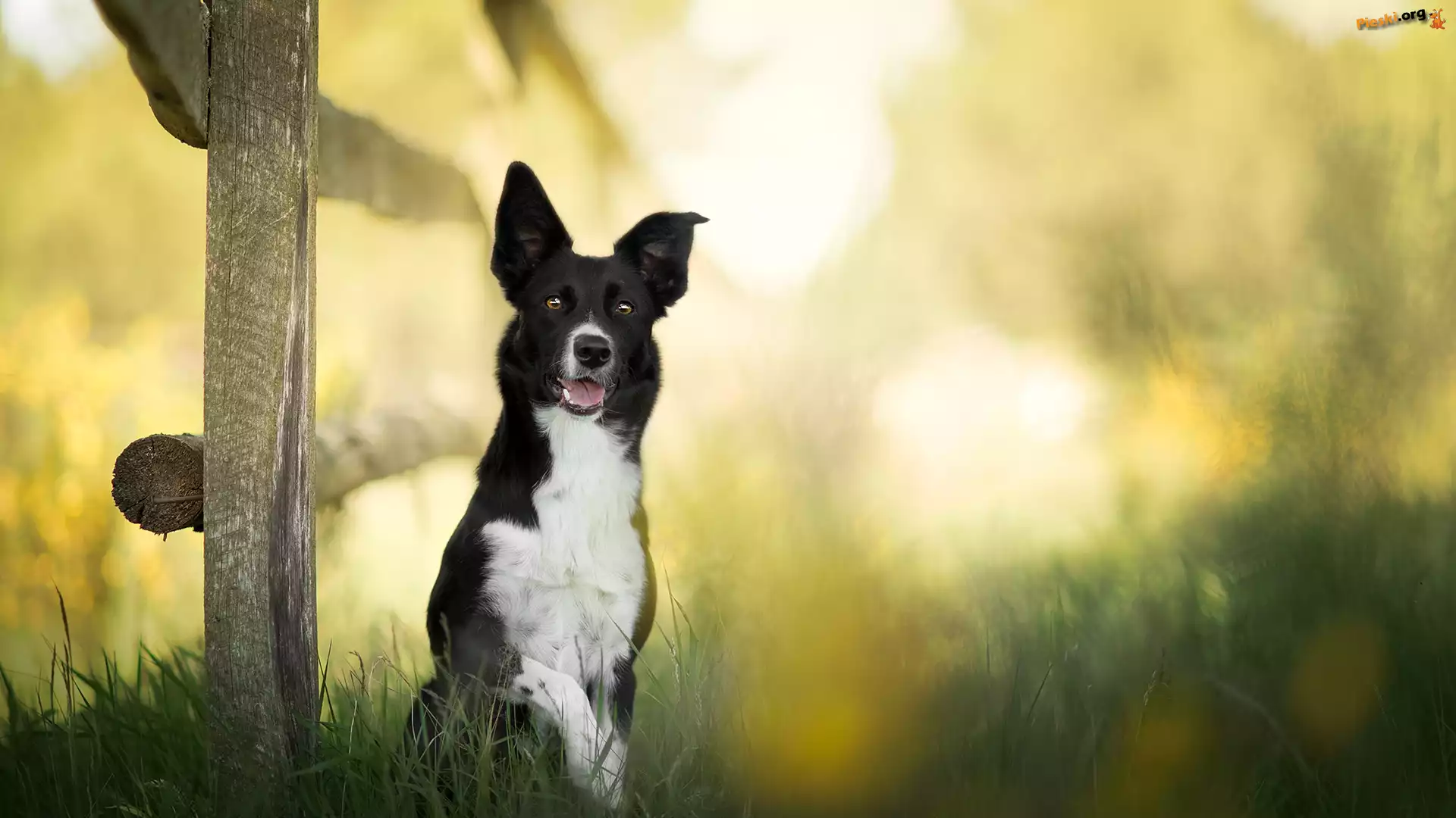 Pies, Rozmyte, Trawa, Border collie, Płot, Tło, Pieski