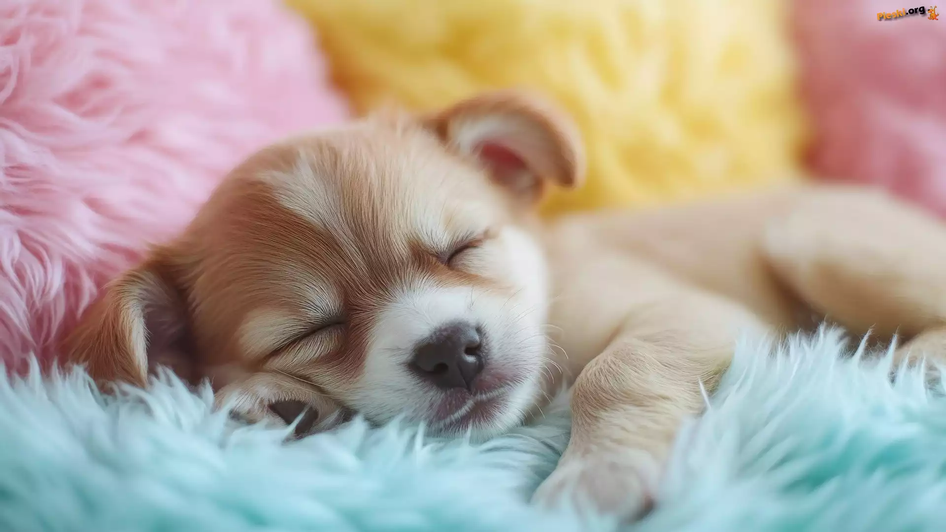 Szczeniak, Posłanie, Pies, Różowo-niebieskie, Śpiący, Pieski