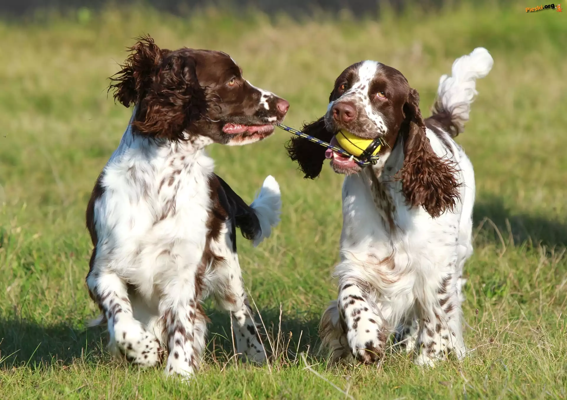 Dwa, Spaniele, Łąka