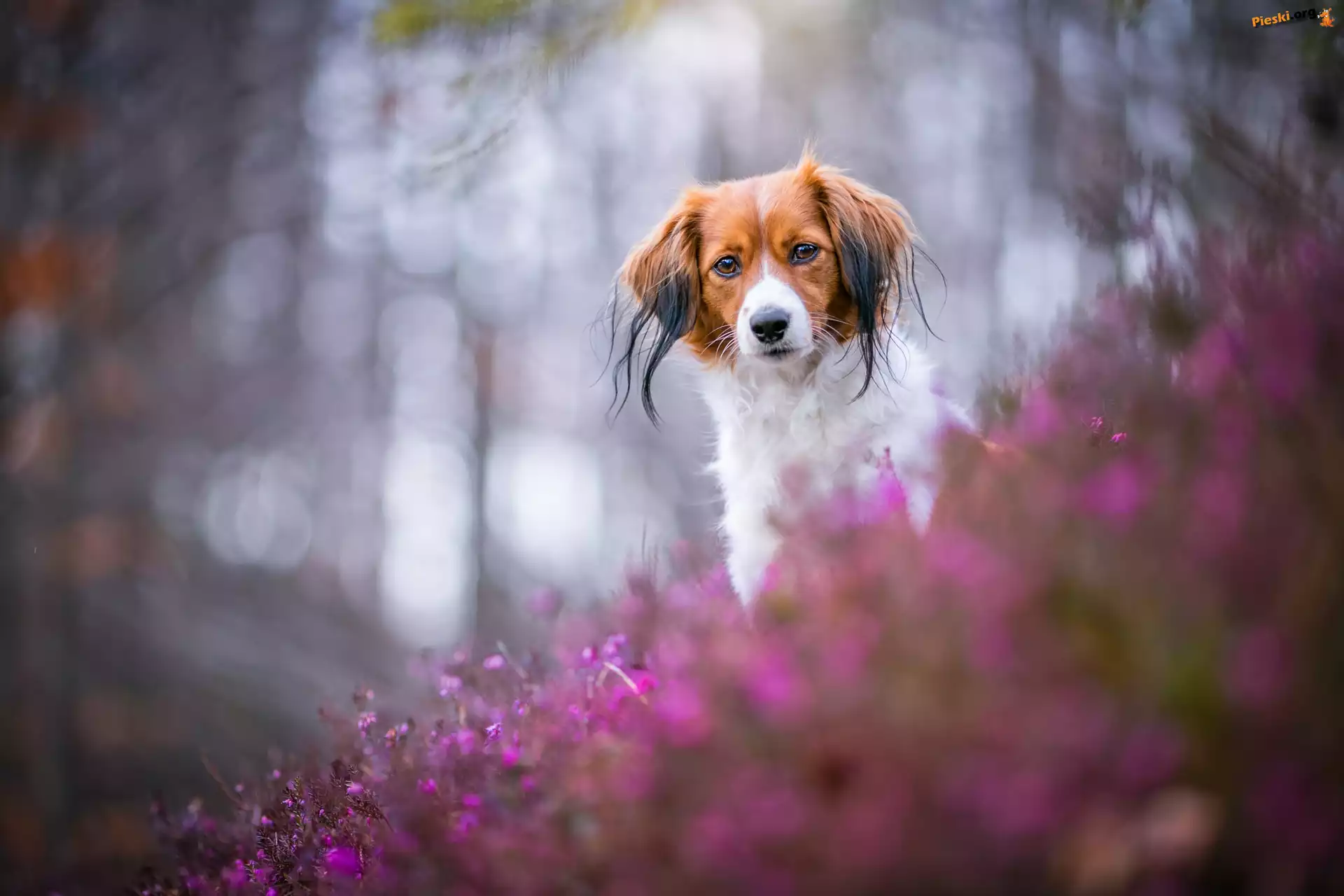 Spojrzenie, Pies, Płochacz holenderski, Wrzosy