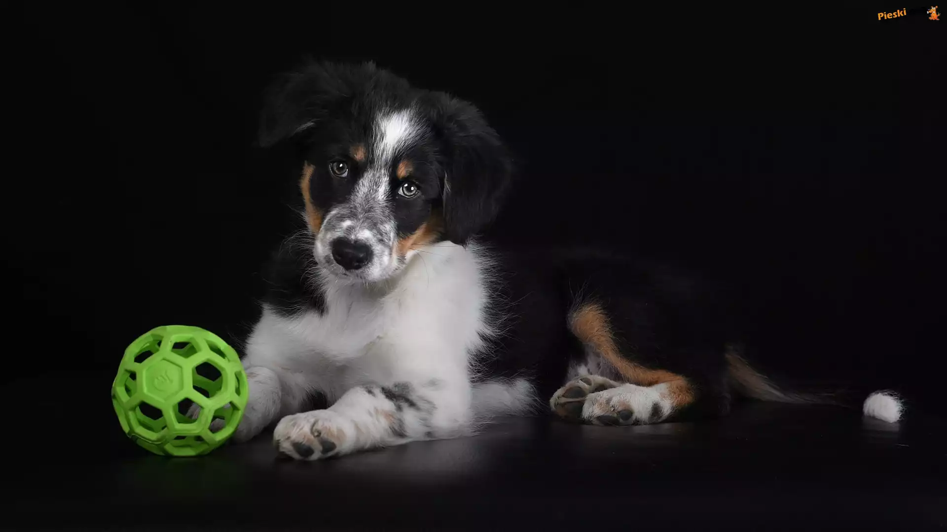 Gryzak, Szczeniak, Czarne, Zabawka, Owczarek australijski, Piłka, Tło