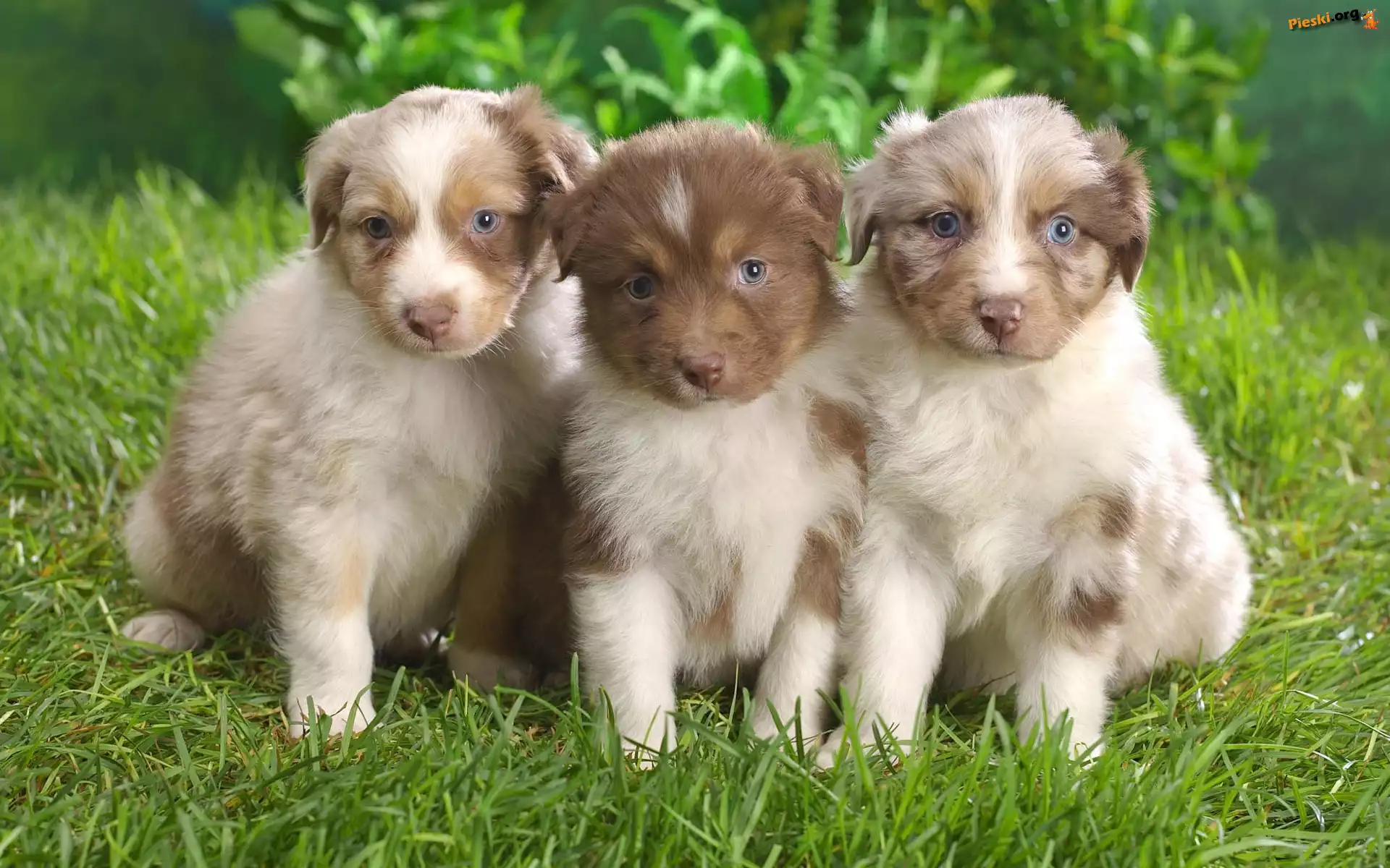 Owczarki australijskie, Trzy, Szczeniaki, Australian shepherd, Pieski