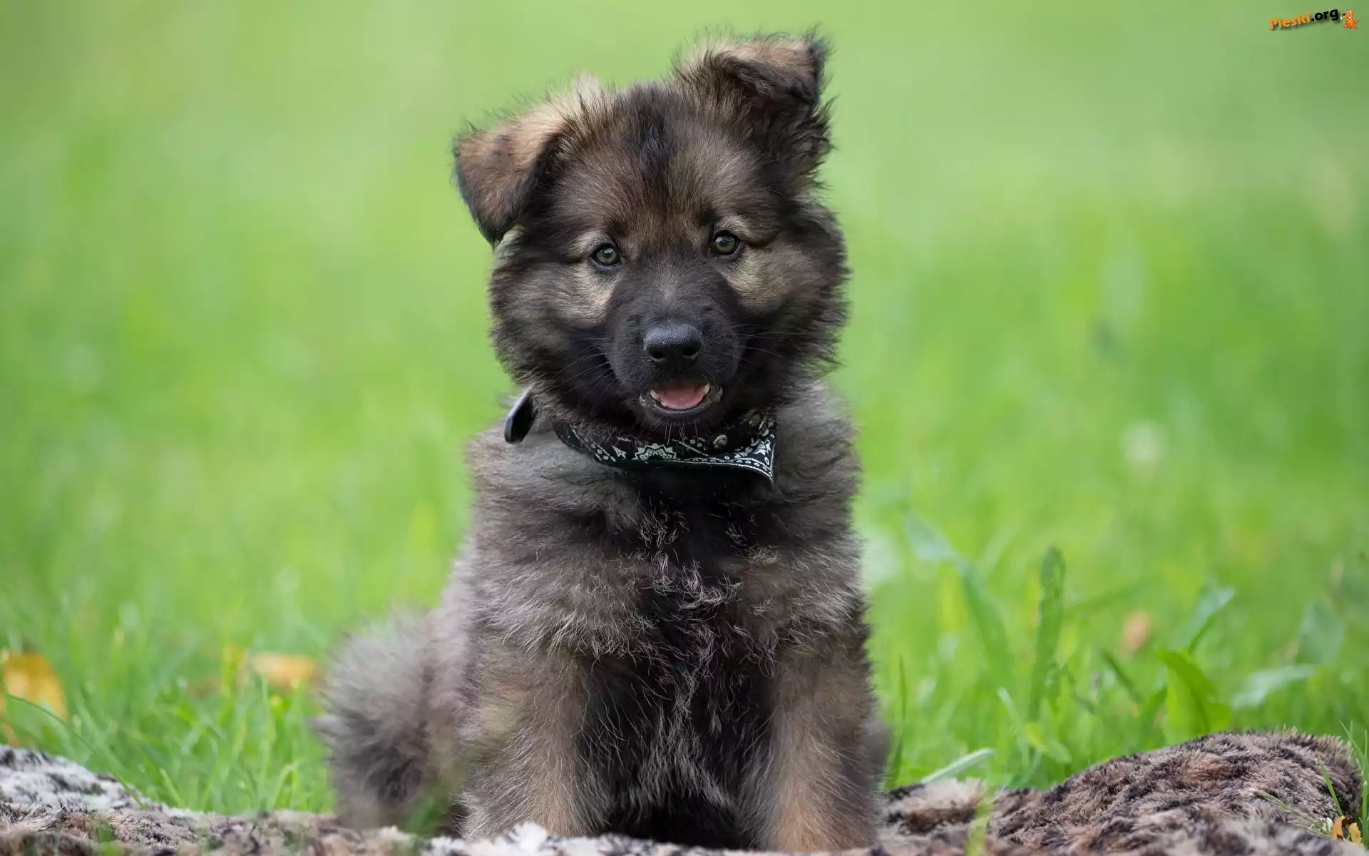 Spojrzenie, Trawa, Pies, Koc, Szczeniak, Pieski