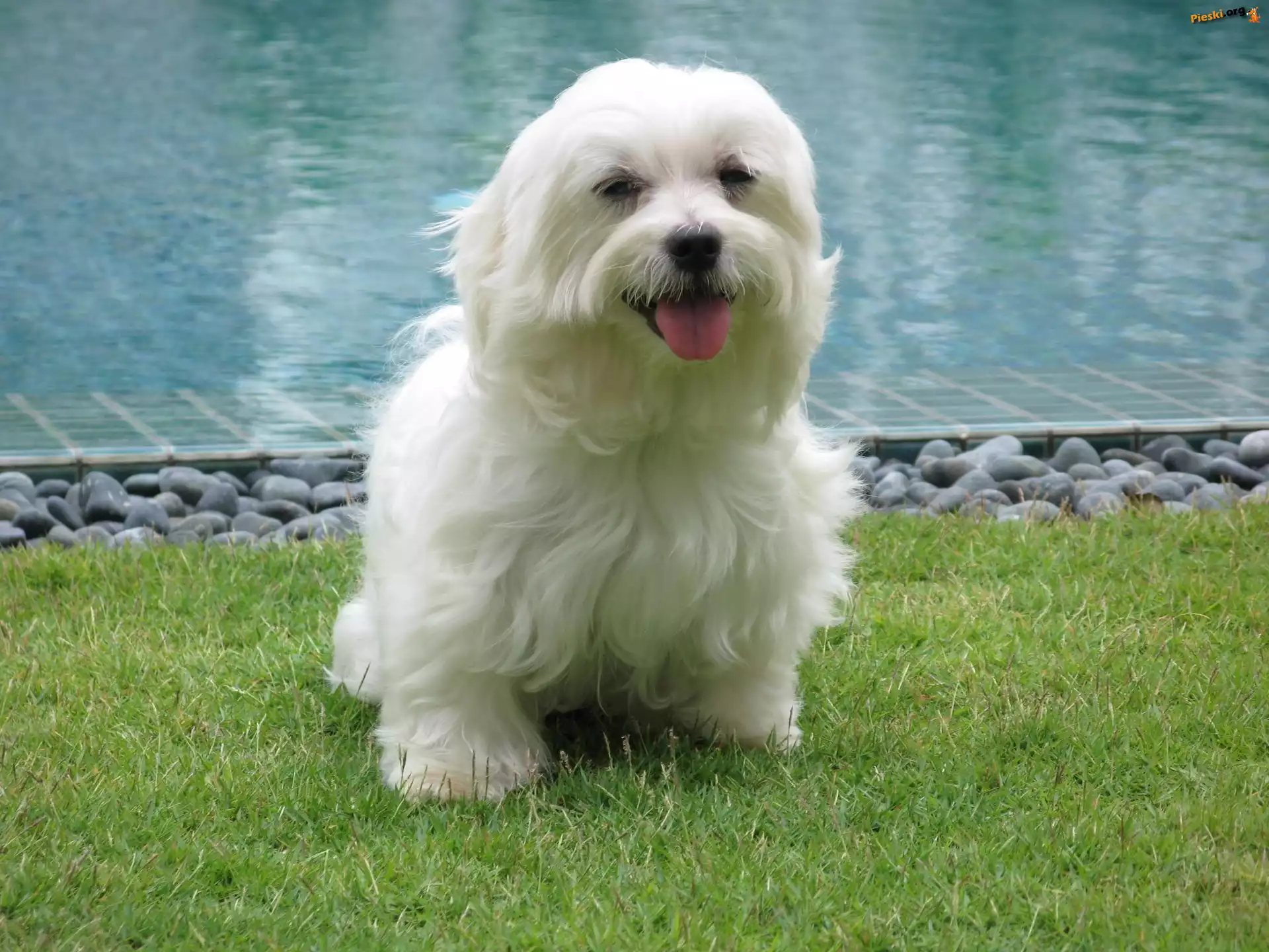 Trawa, Biały, Piesek, Basen