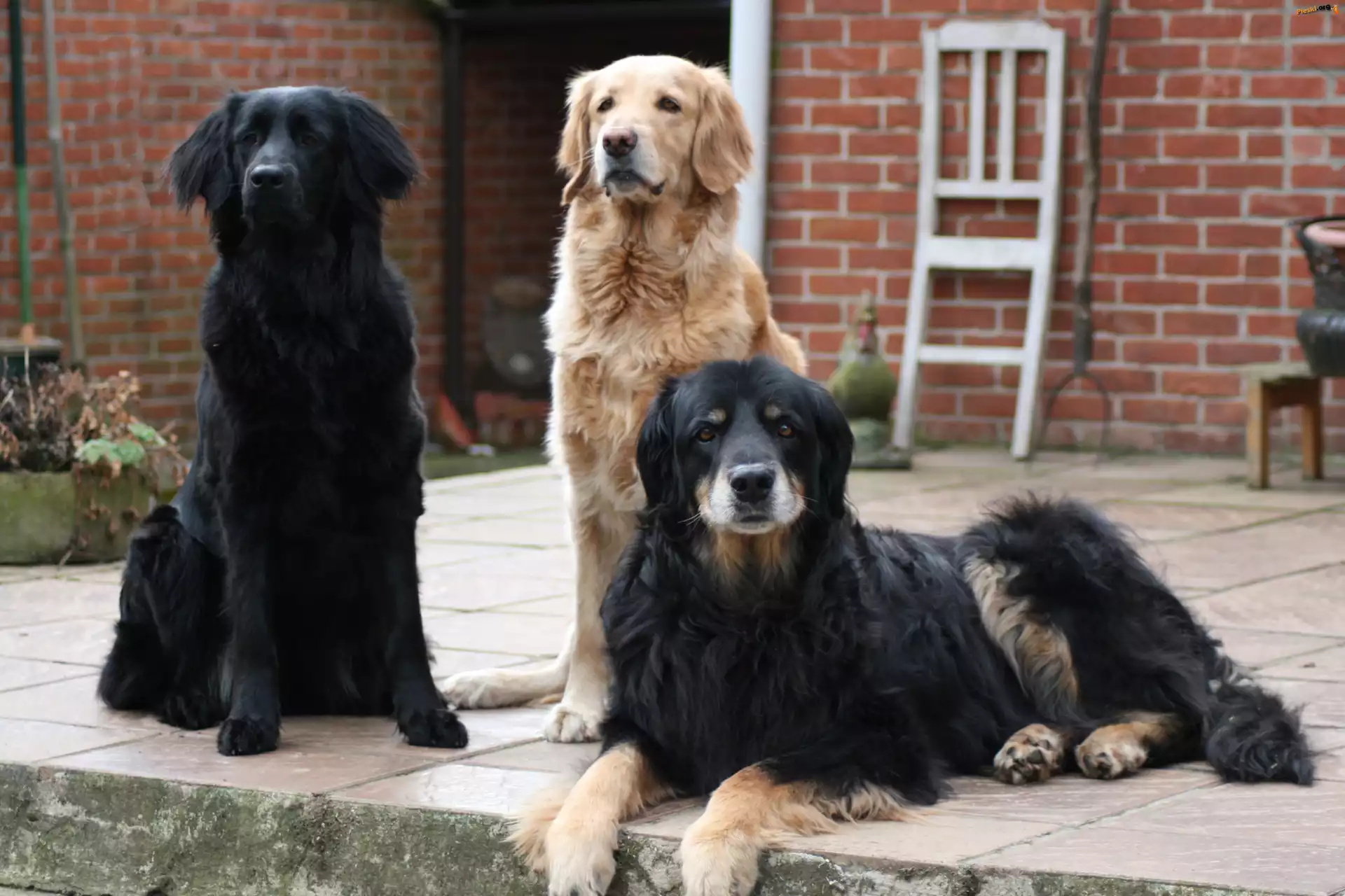 trzy, Hovawarty Piesek, Portret droga, las, Hovawart Hovawart, śnieg czarny, Hovawart Pies, Hovawart, Tulipan żółte, czarny, Hovawart, kwiatki Pies, Hovawart, Kwiat szczeniaki, Hovawarta duży, Hovawart Hovawart, zabawka pysk, Hovawarta