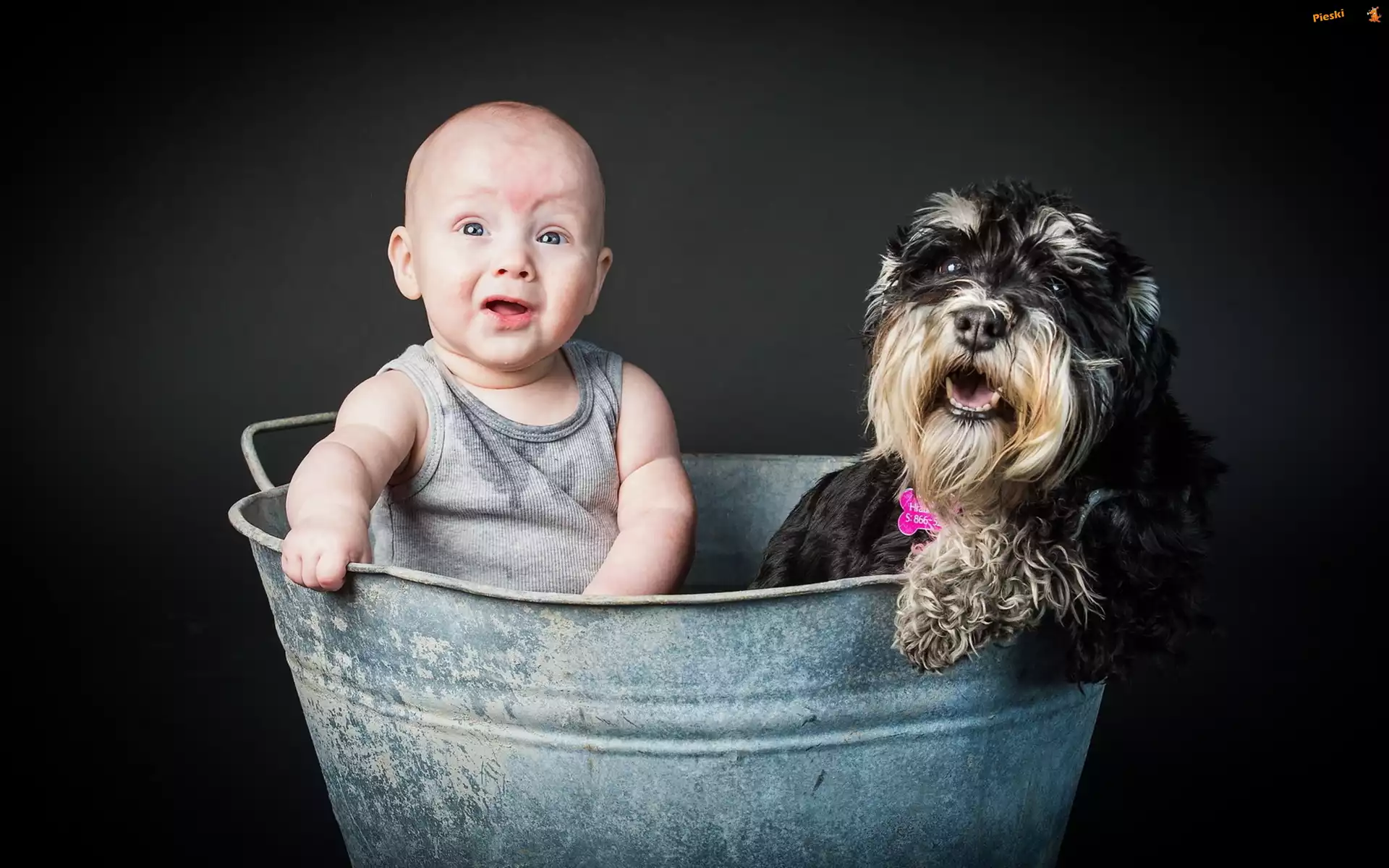 Pies, Dziecko, Wanienka, Sznaucer średni