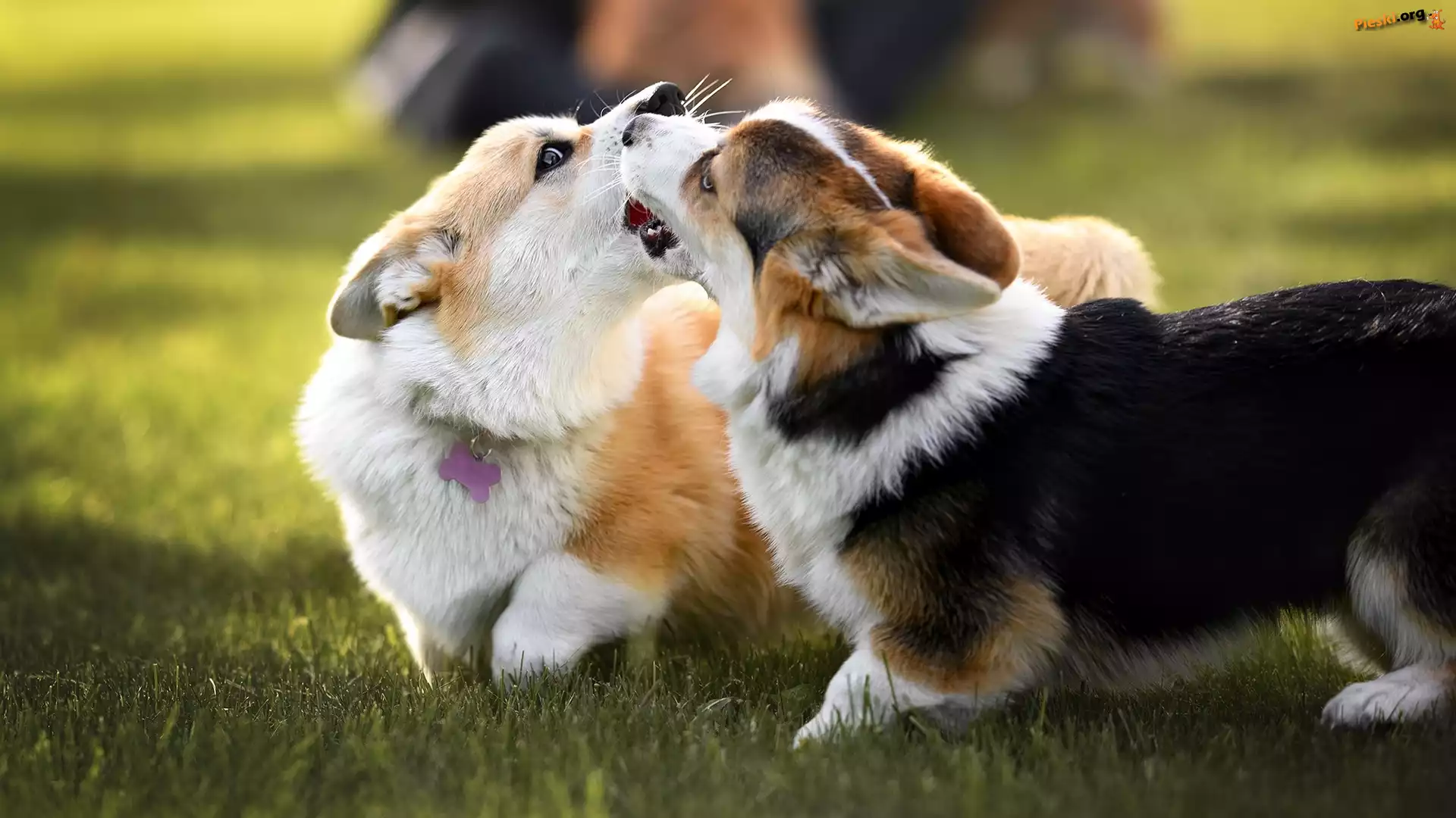 Zabawa, Trawa, Dwa, Welsh corgi cardigan, Psy, Pieski