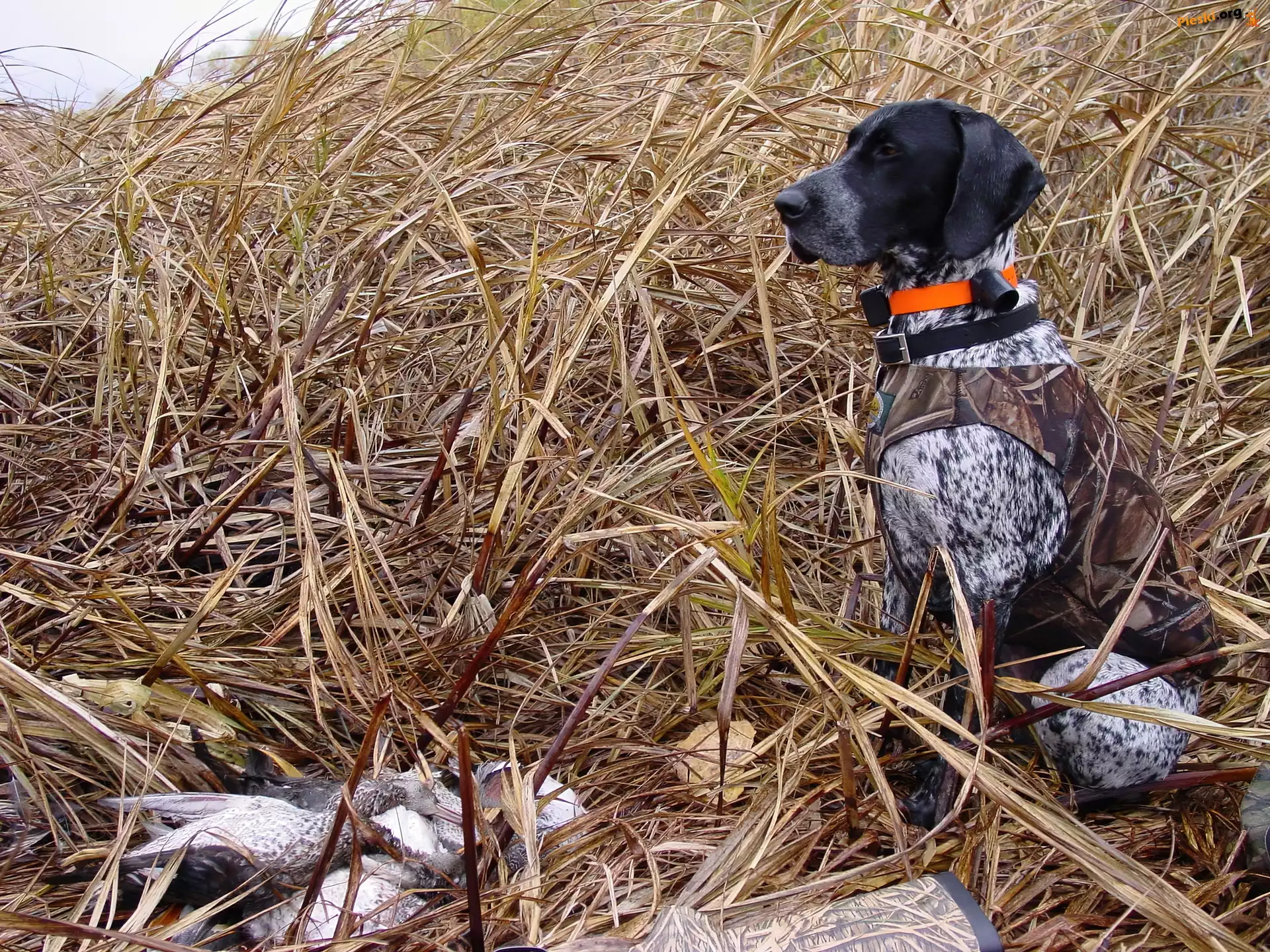 Wyżeł niemiecki krótkowłosy, sucha, trawa