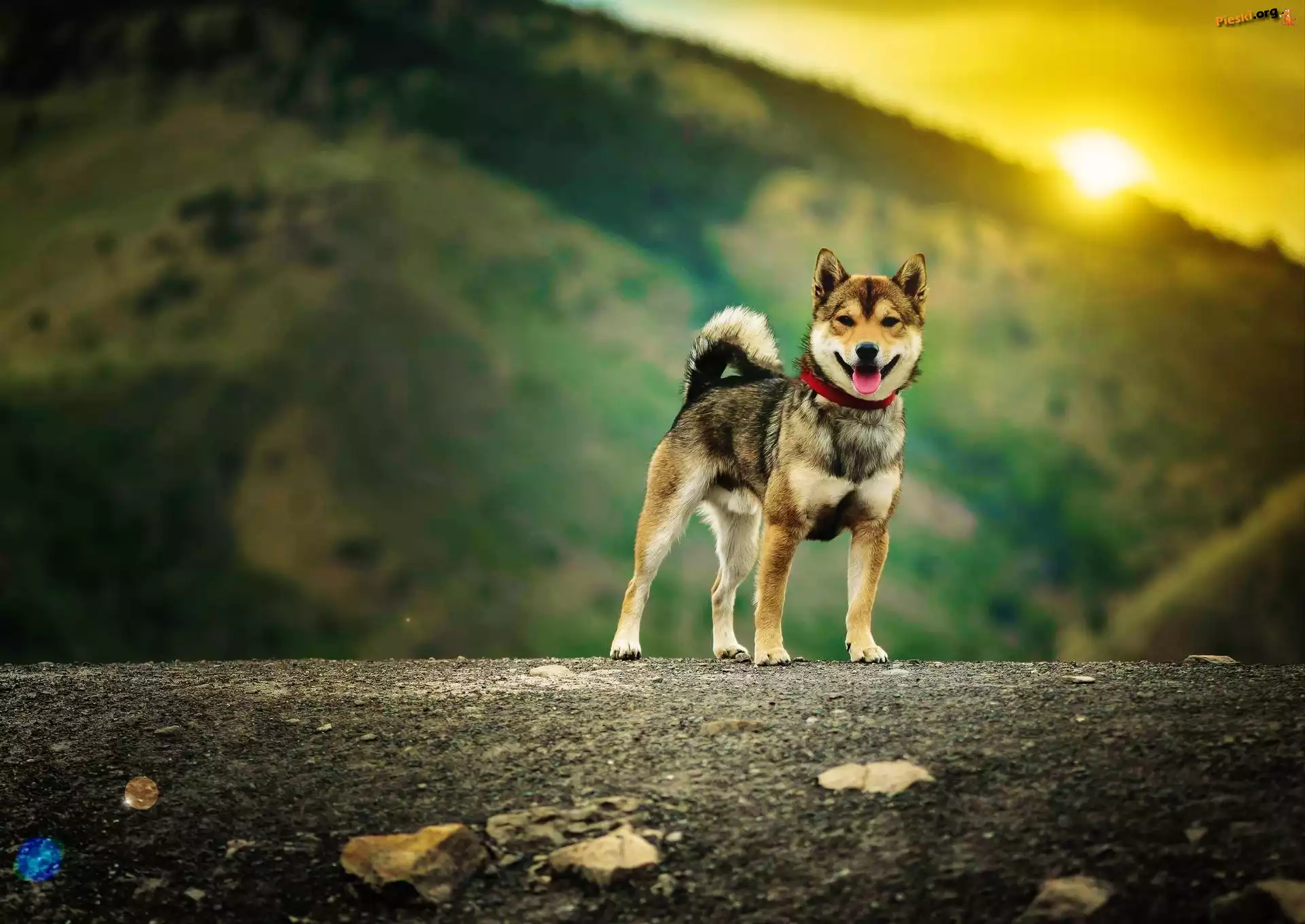 Zachód, Pies, Droga, Słońca, Pieski