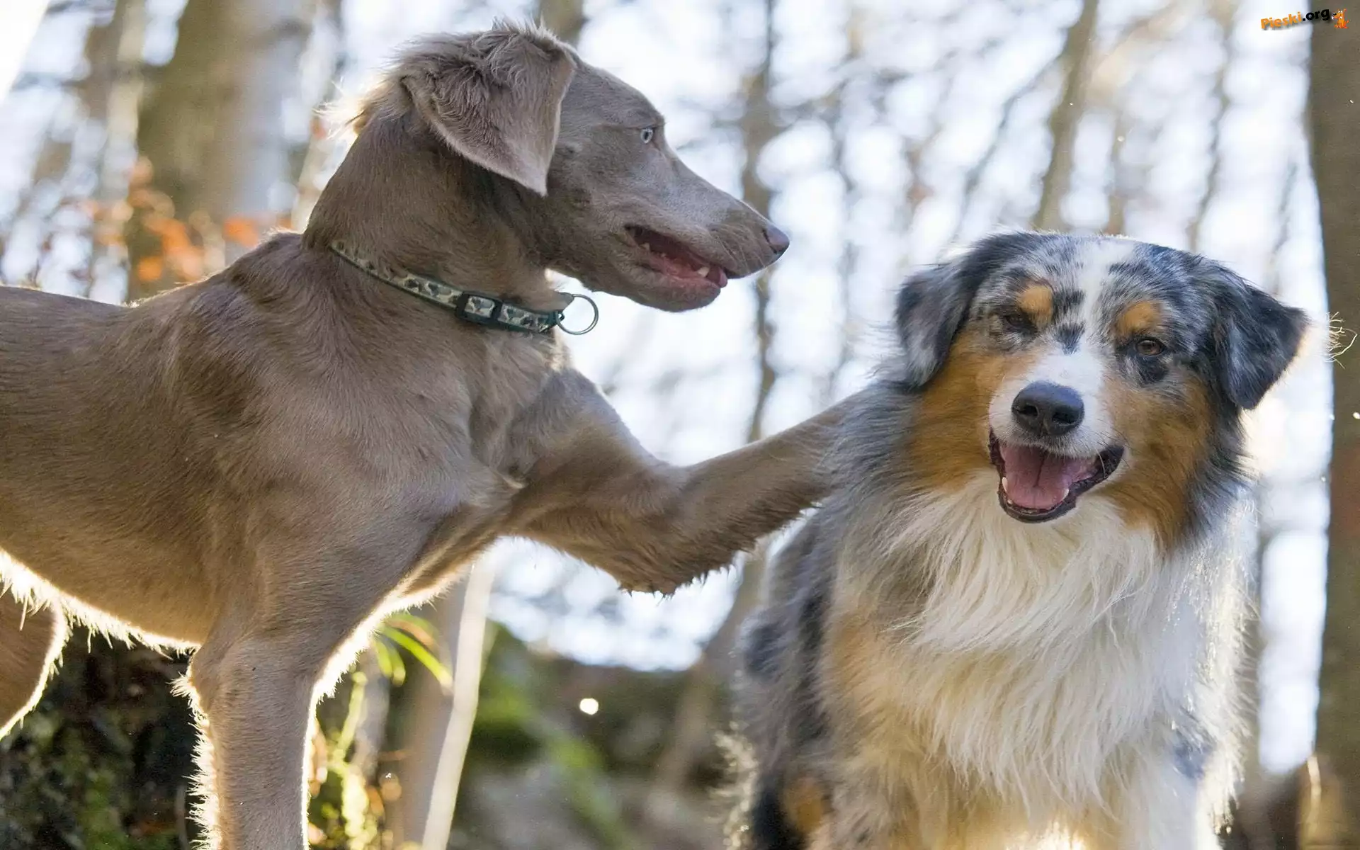 Wyżeł weimarski, Owczarek australijski, Australian shepherd