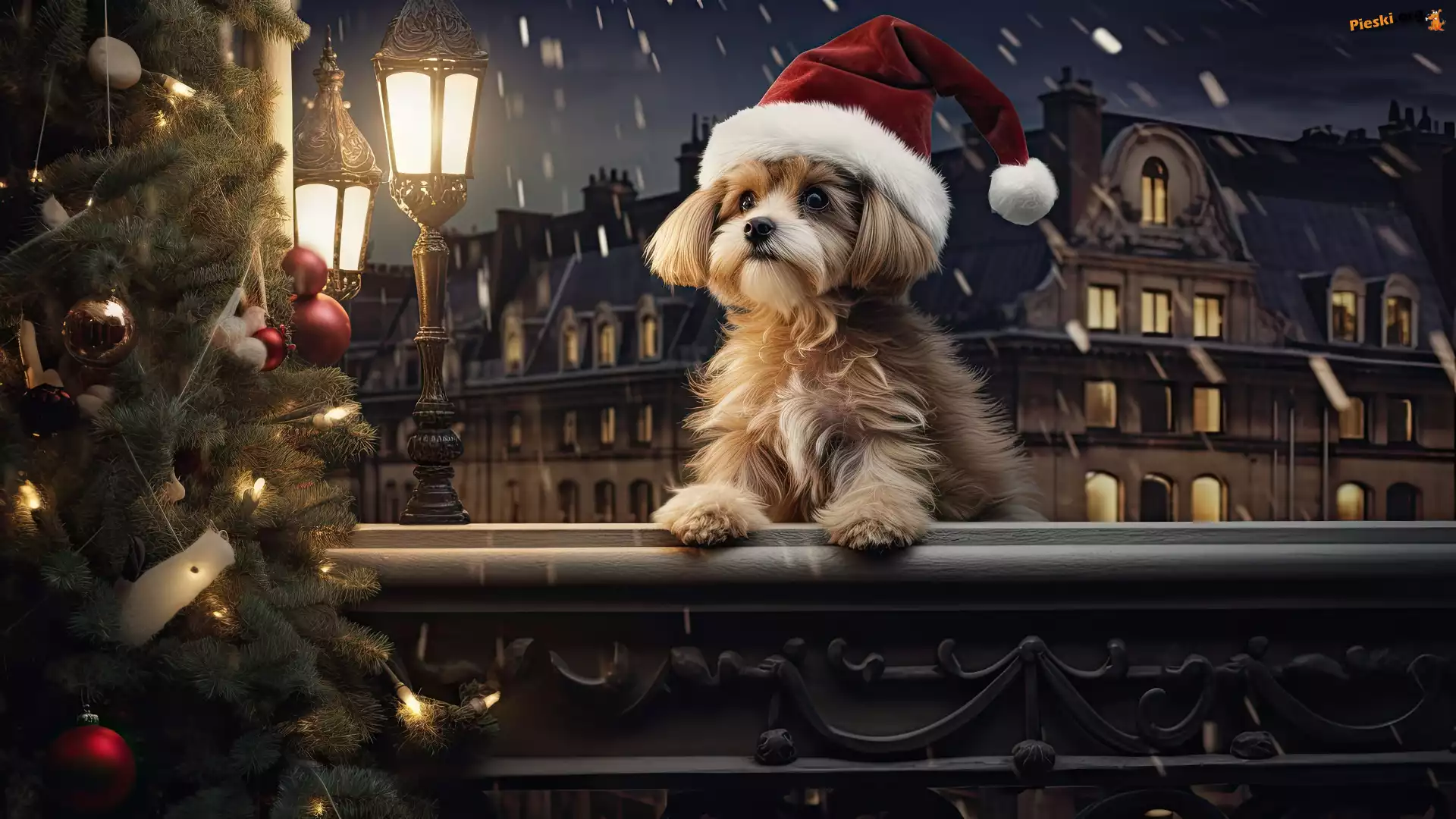 2D, Pies, Czapka, Zima, Latarnie, Choinka, Pieski
